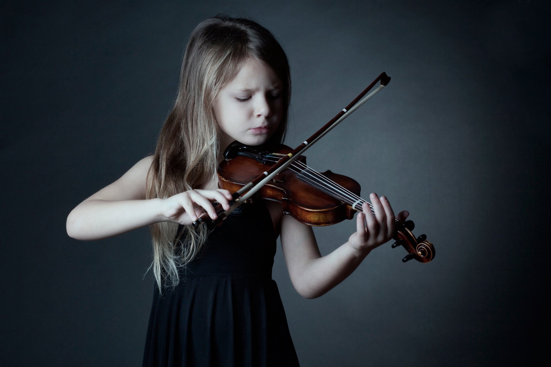 Rothaarige mädchen spielt geige auf dem dach des hausesRothaarige Mädchen spielt Geige auf dem Dach des Hauses