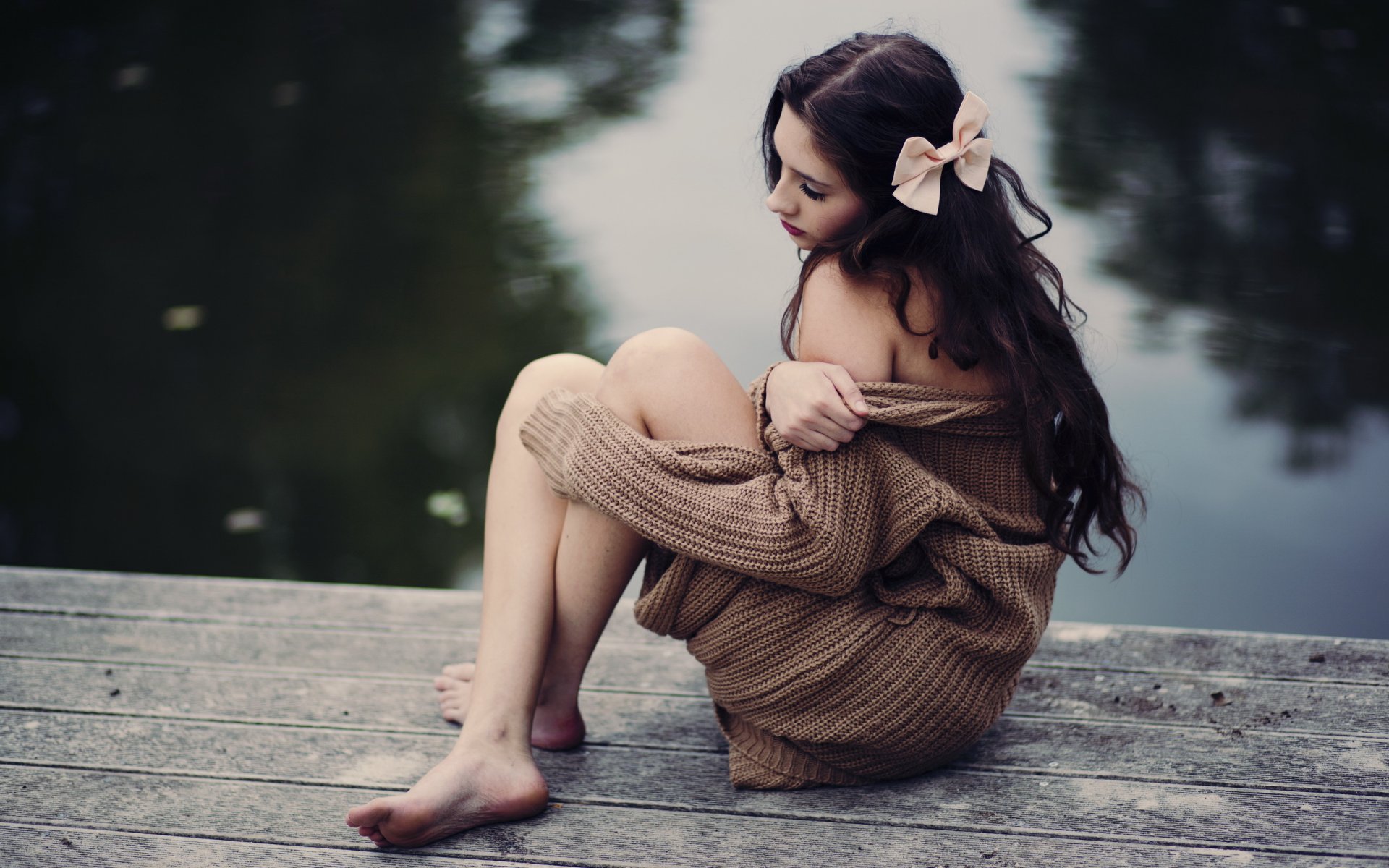 Schönes Mädchen und Waffen in der Nähe des Sees