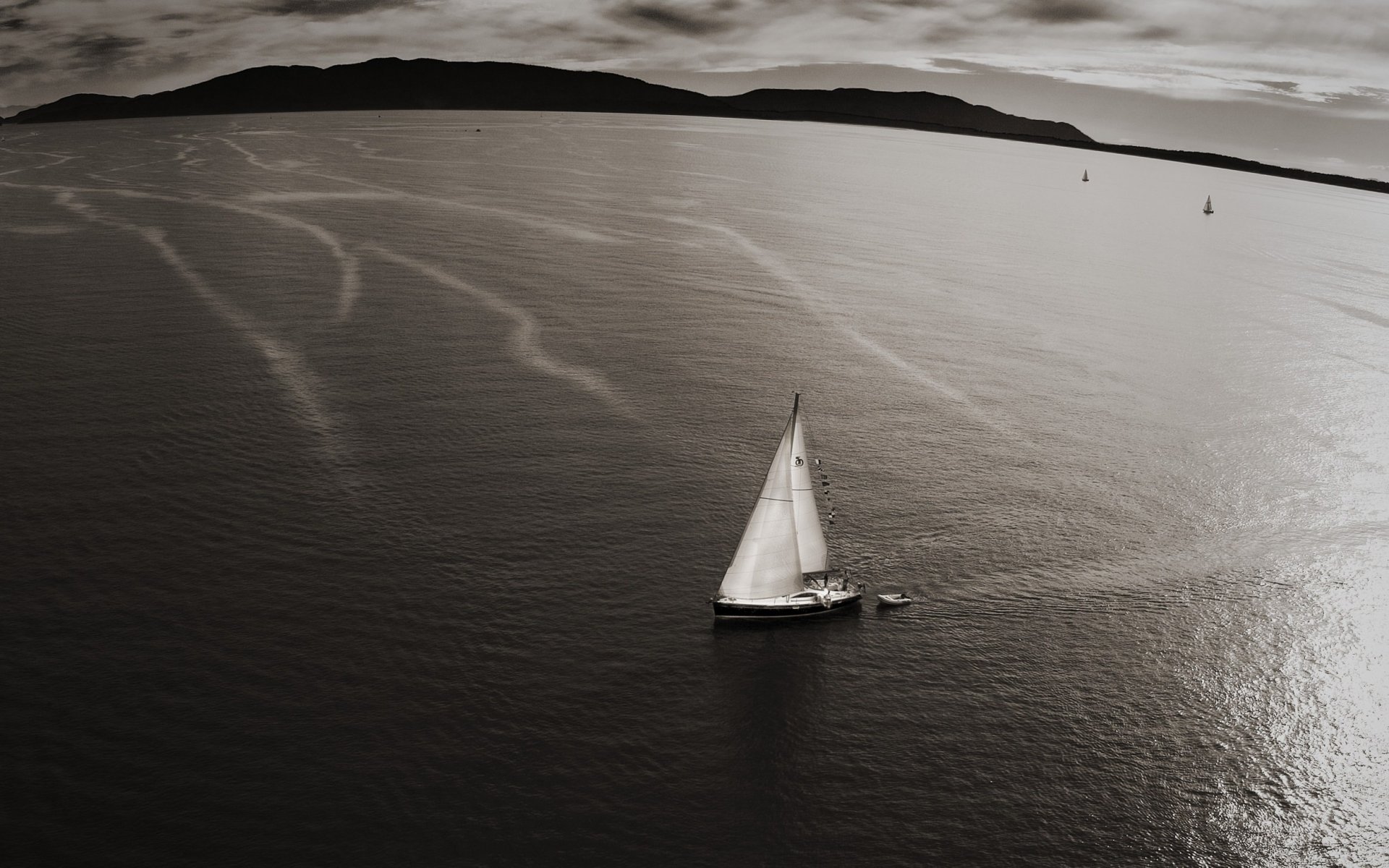 Blick von der Yacht auf den Sonnenuntergang und das Meer