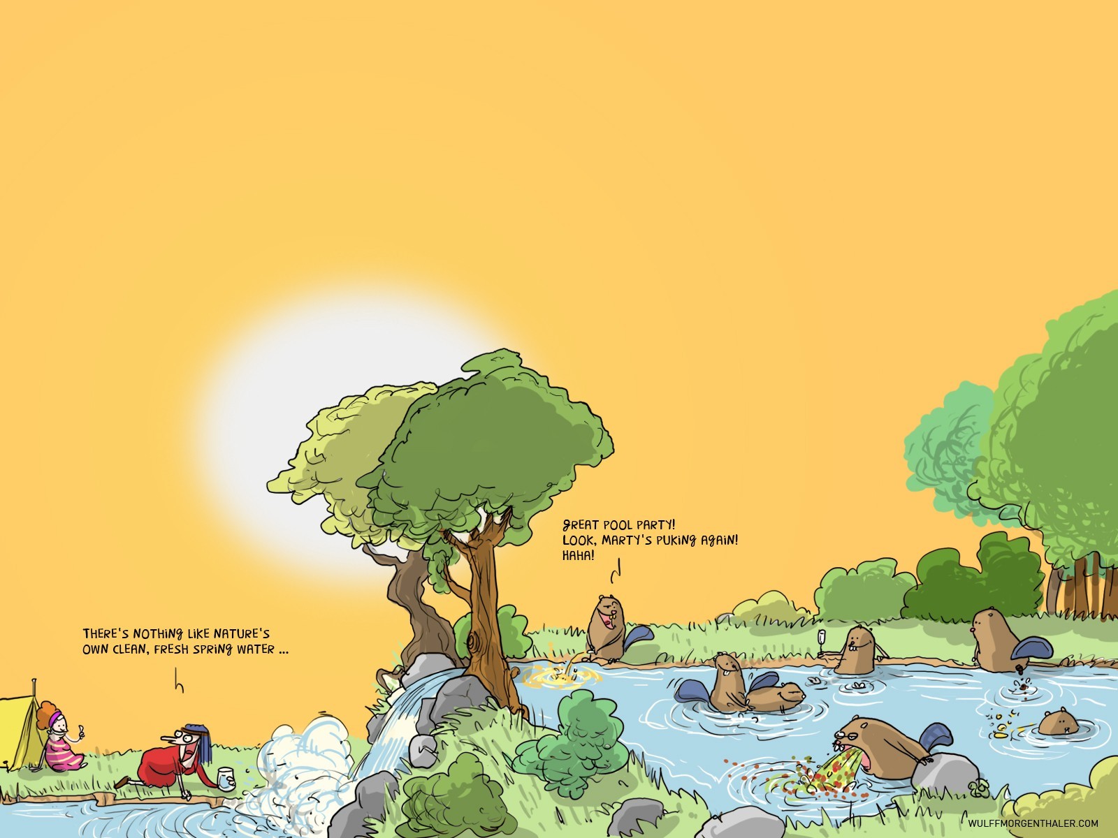Tiere auf dem hintergrund der berge mit wasserfällen am teichTiere auf dem Hintergrund der Berge mit Wasserfällen am Teich