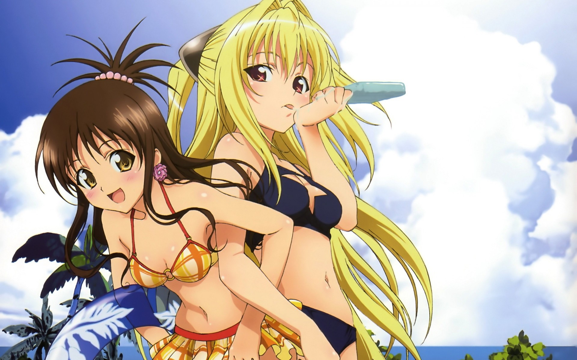 Anime-bild mit zwei mädchen, von denen eines zwinkertAnime-Bild mit zwei Mädchen, von denen eines zwinkert