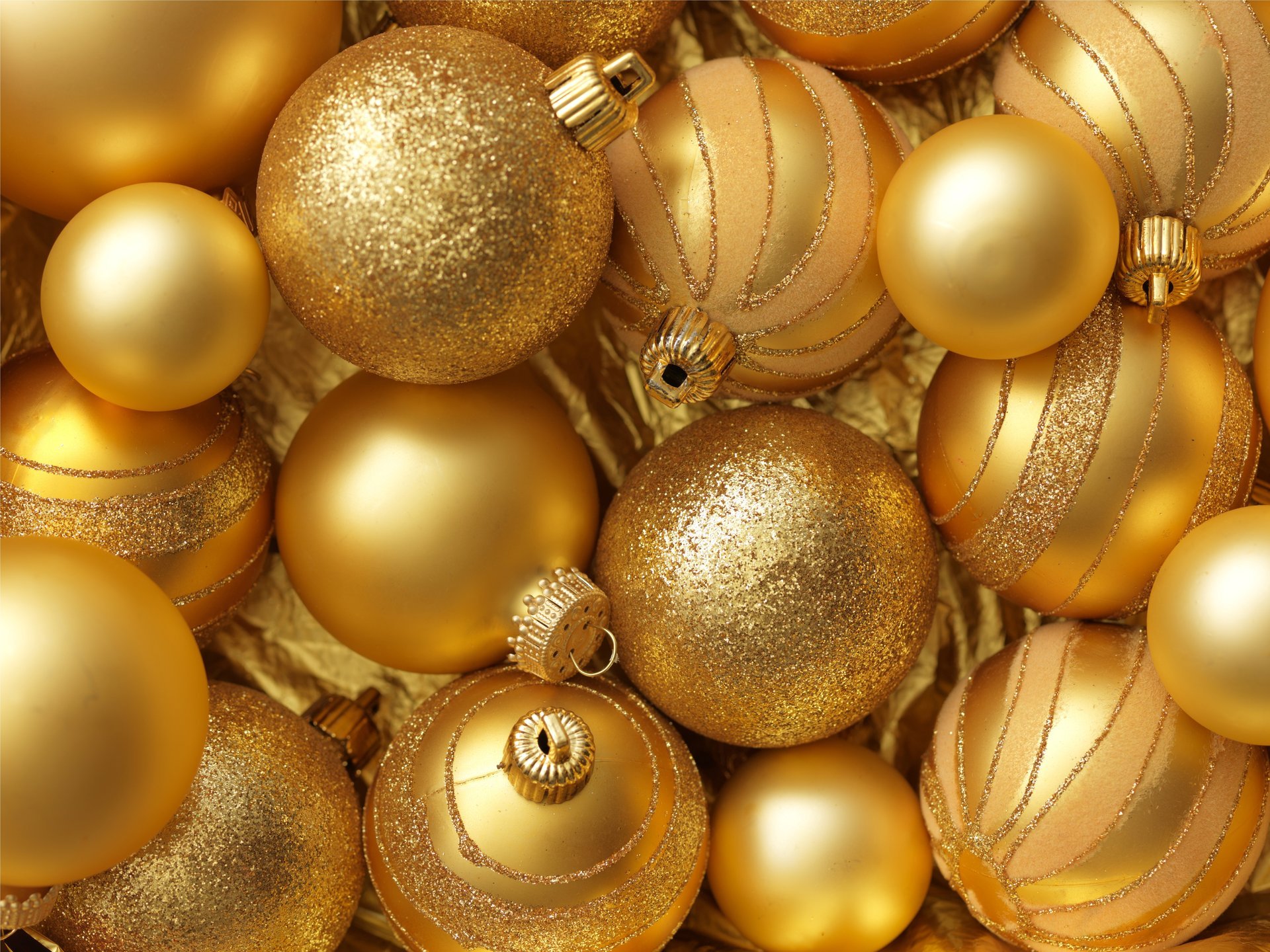 Goldene christbaumspielzeug auf verschwommenem hintergrundGoldene Christbaumspielzeug auf verschwommenem Hintergrund