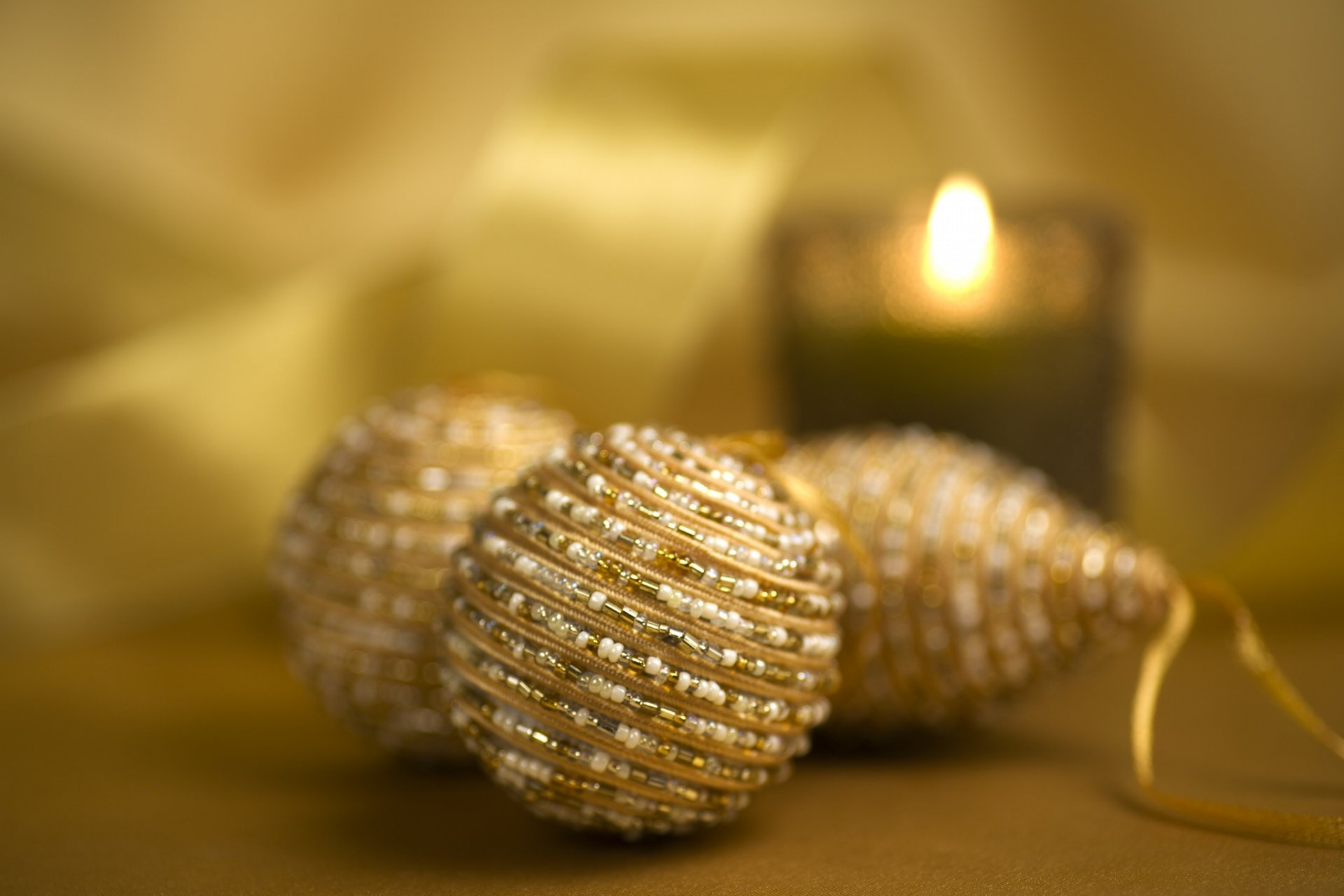 Weihnachtsbaum Spielzeug goldener Stern und Bänder mit Perlen