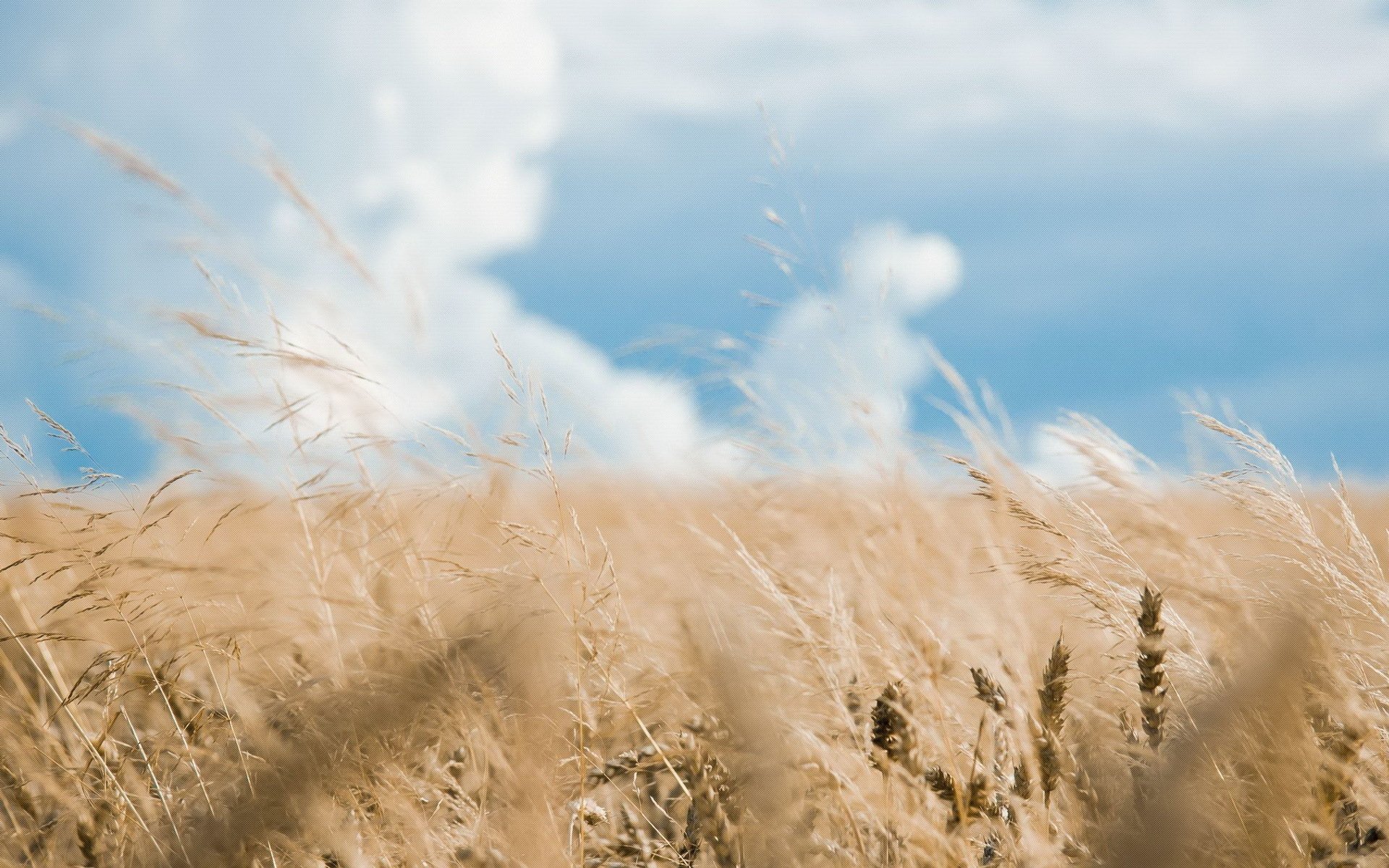 Goldenes Weizenfeld vor dem Hintergrund des blauen Himmels