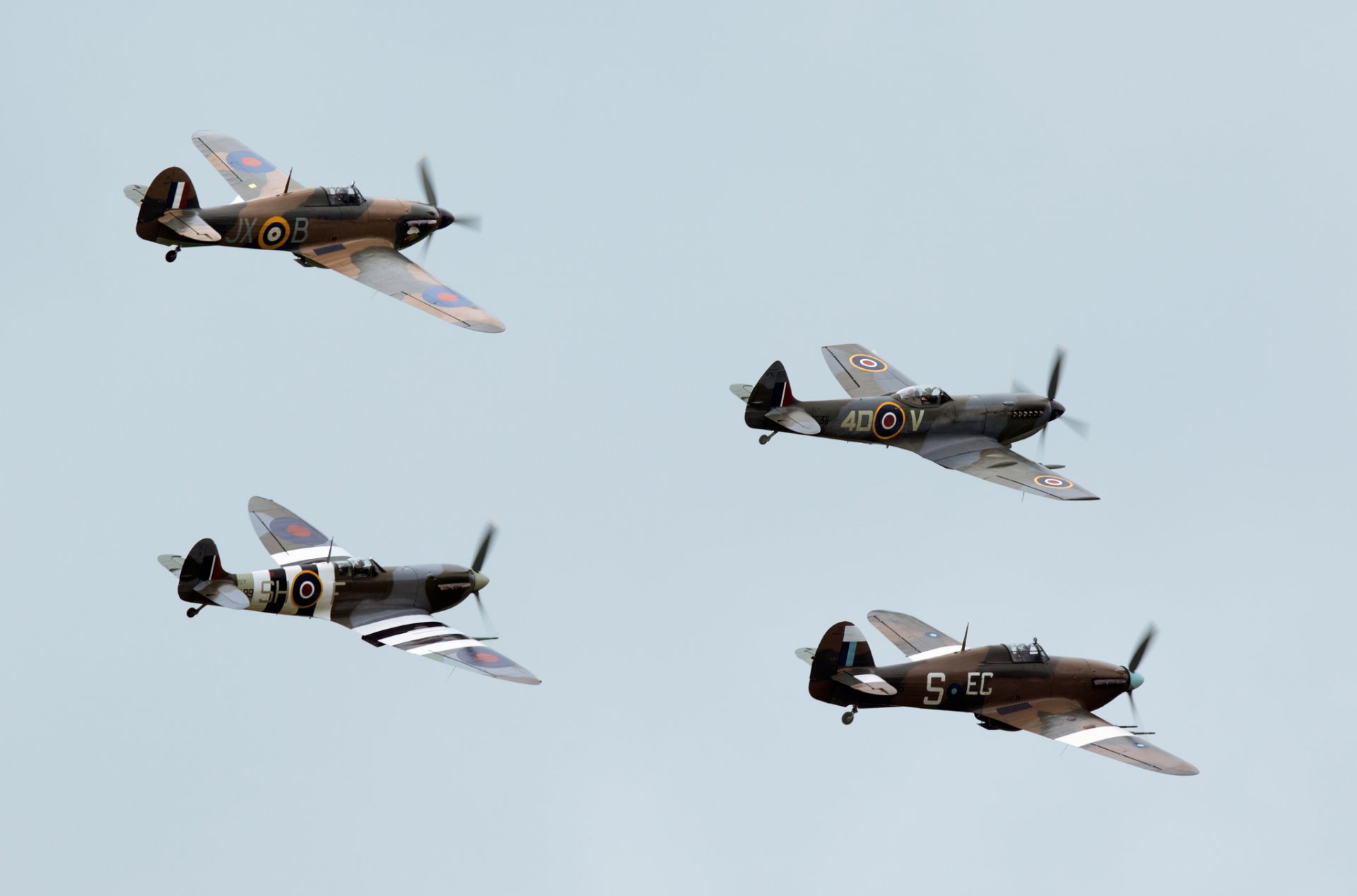 Eine Gruppe von Kampfjets fliegt über die Berge am Himmel