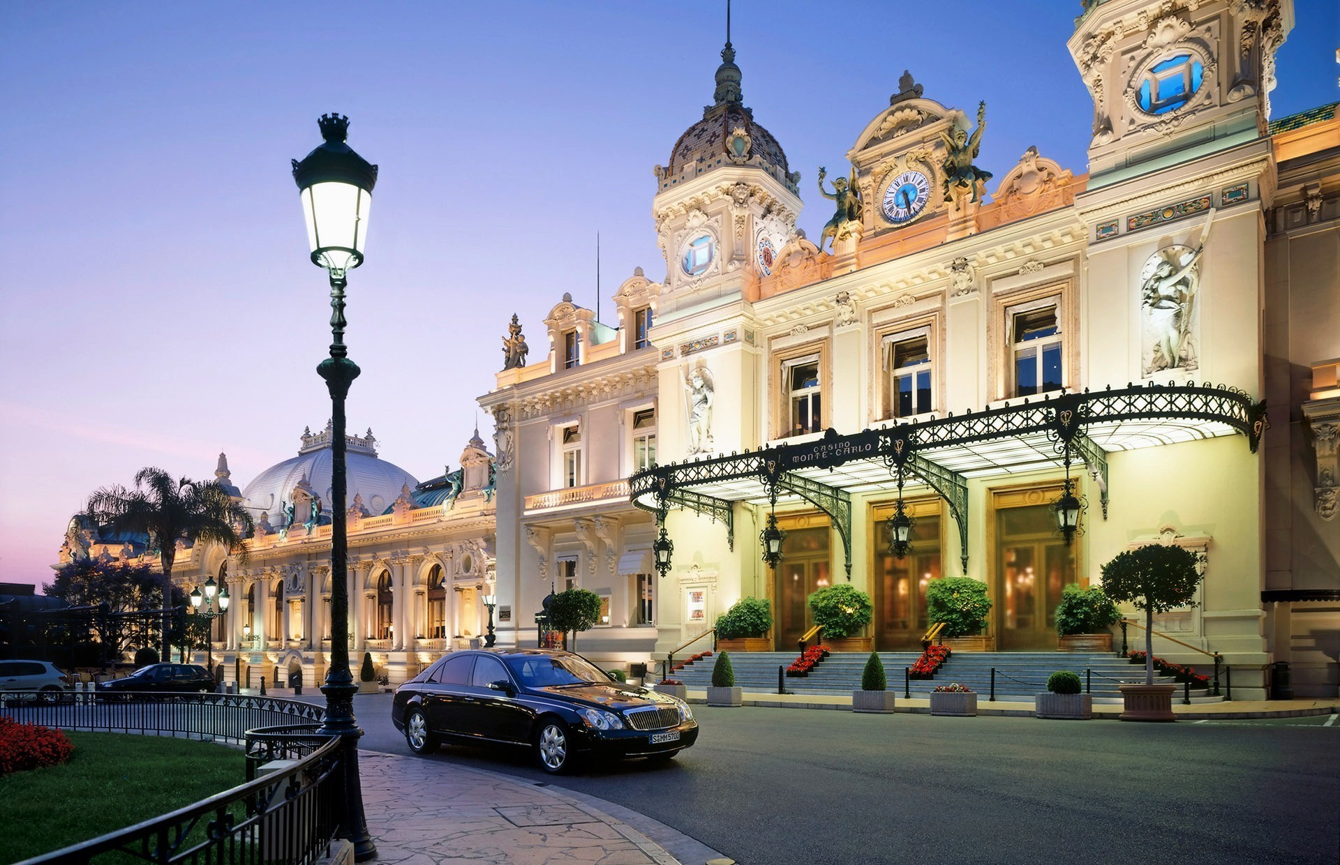 Das Casino-Gebäude. Das Auto unter der Laterne