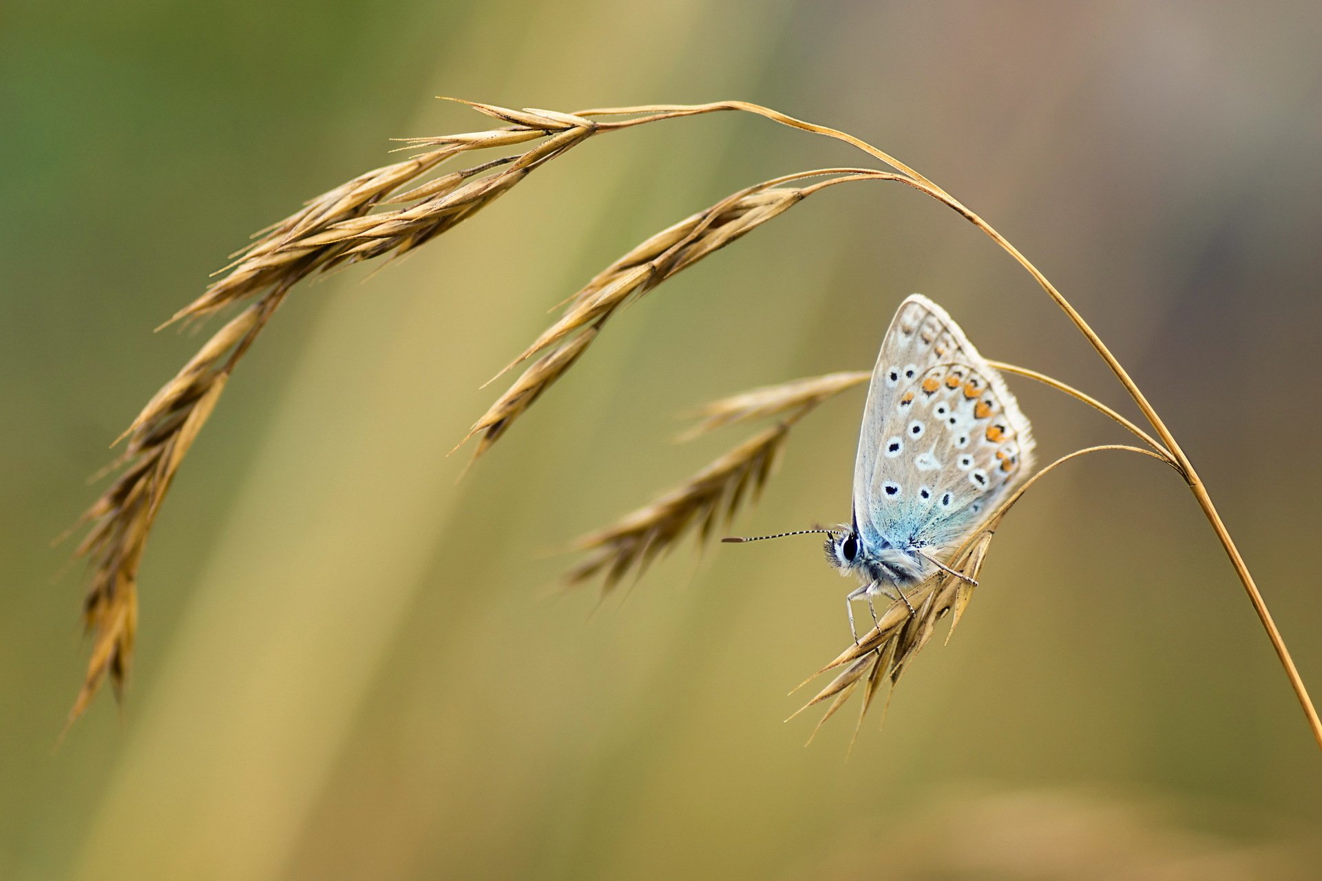 Ein schmetterling sitzt auf einem langen grashalm. zeichnungEin Schmetterling sitzt auf einem langen Grashalm. Zeichnung