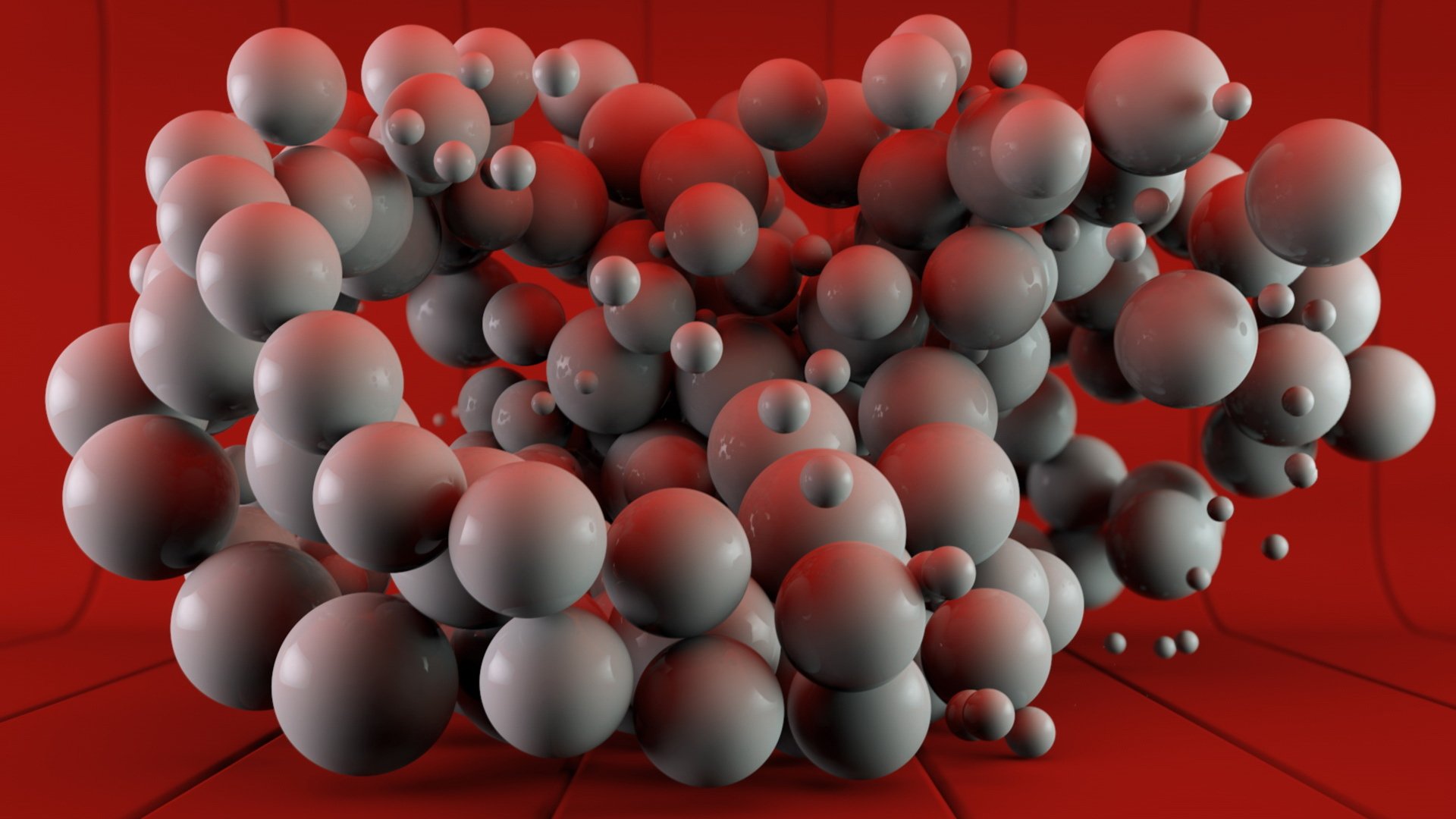 Mehrdimensionale graue kugeln auf rotem hintergrundMehrdimensionale graue Kugeln auf rotem Hintergrund