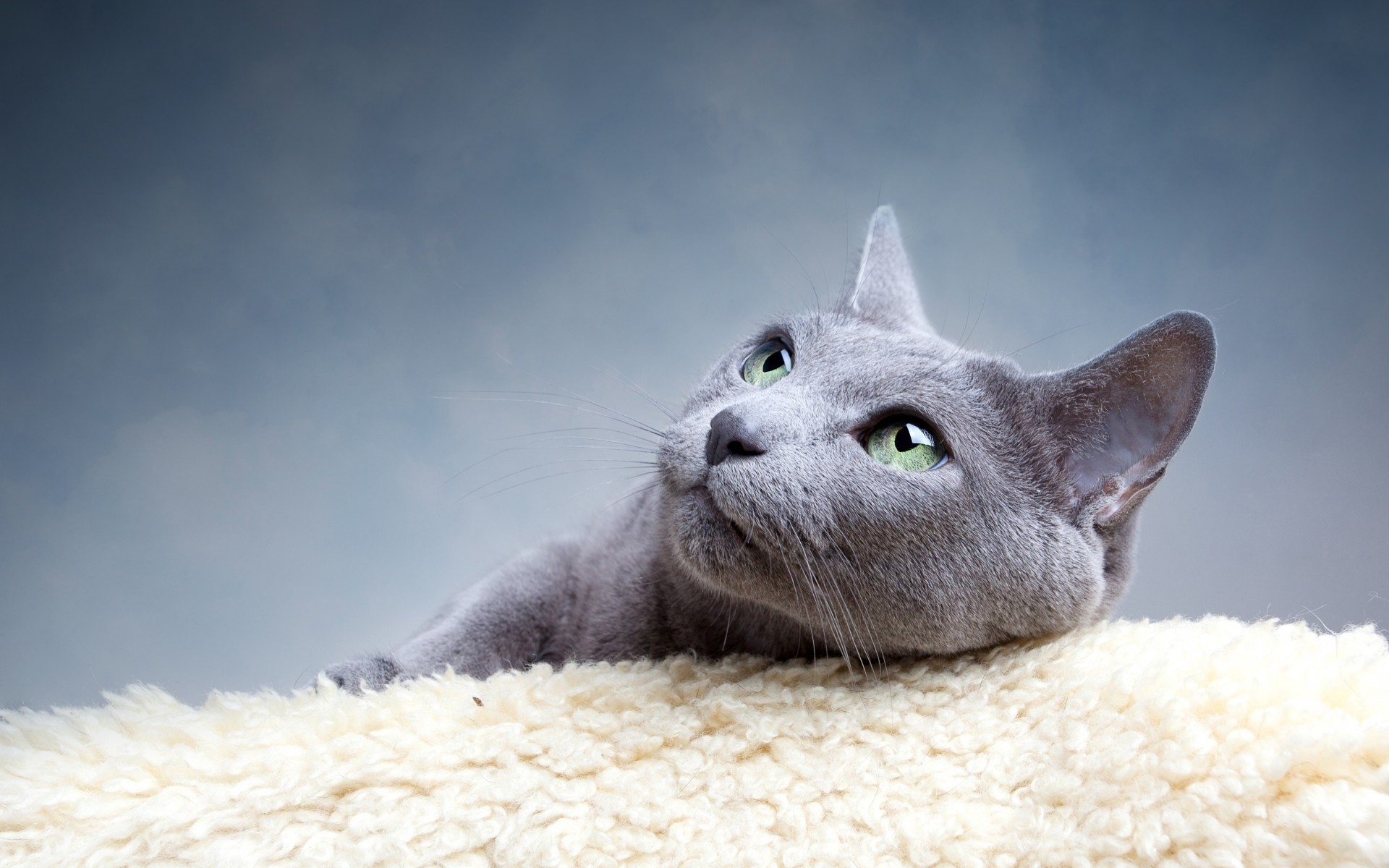 Graue Katze versteckte sich in einem Regal mit Spielzeug