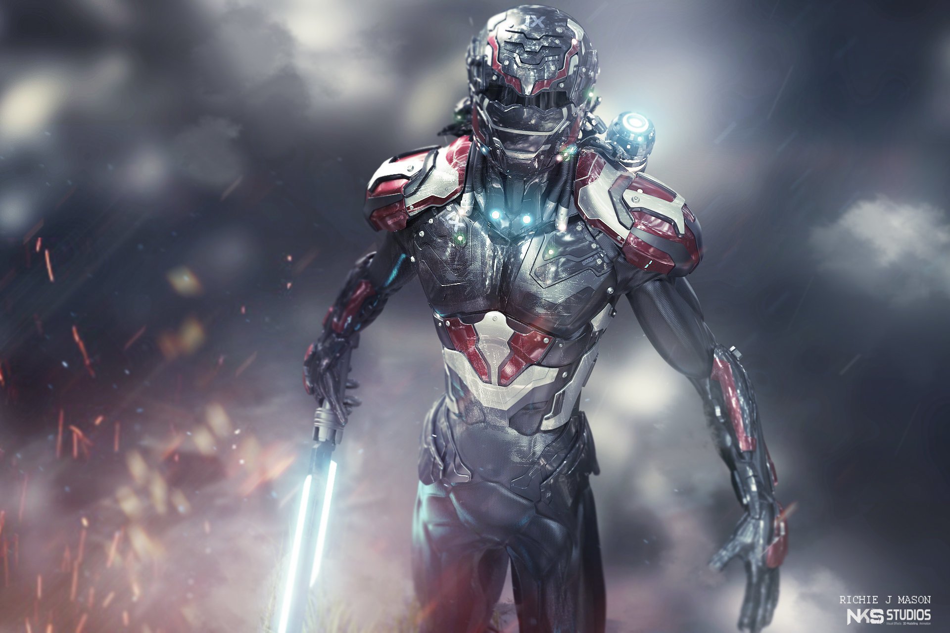 Eine kvarianin in einem grünen anzug und einem mass effect-helmEine Kvarianin in einem grünen Anzug und einem Mass effect-Helm