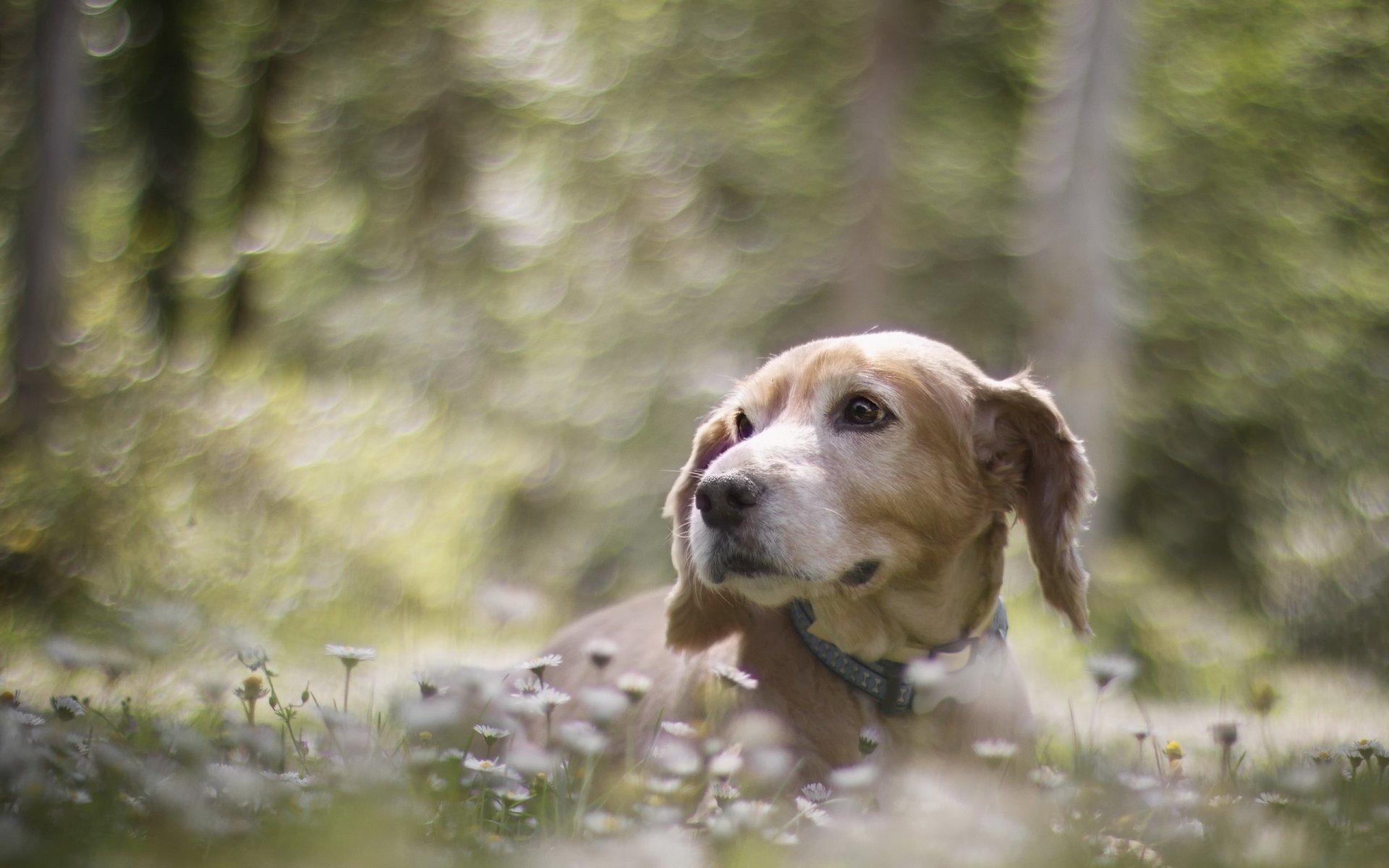 Hund im hintergrund des waldes. der beste freund des menschenHund im Hintergrund des Waldes. Der beste Freund des Menschen