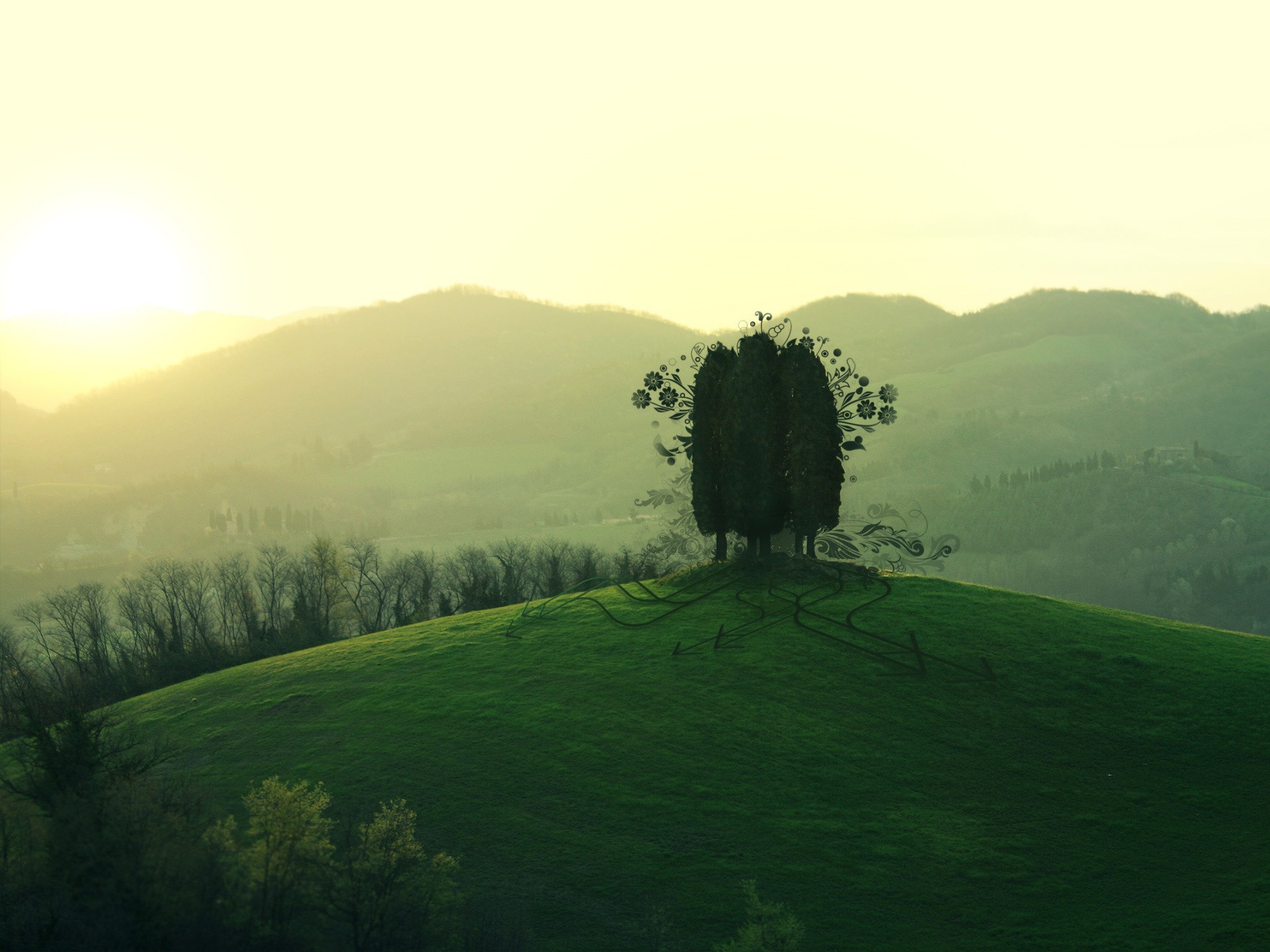 Weihnachtsbaum in der Mitte des Raumes in gedämpften Tönen