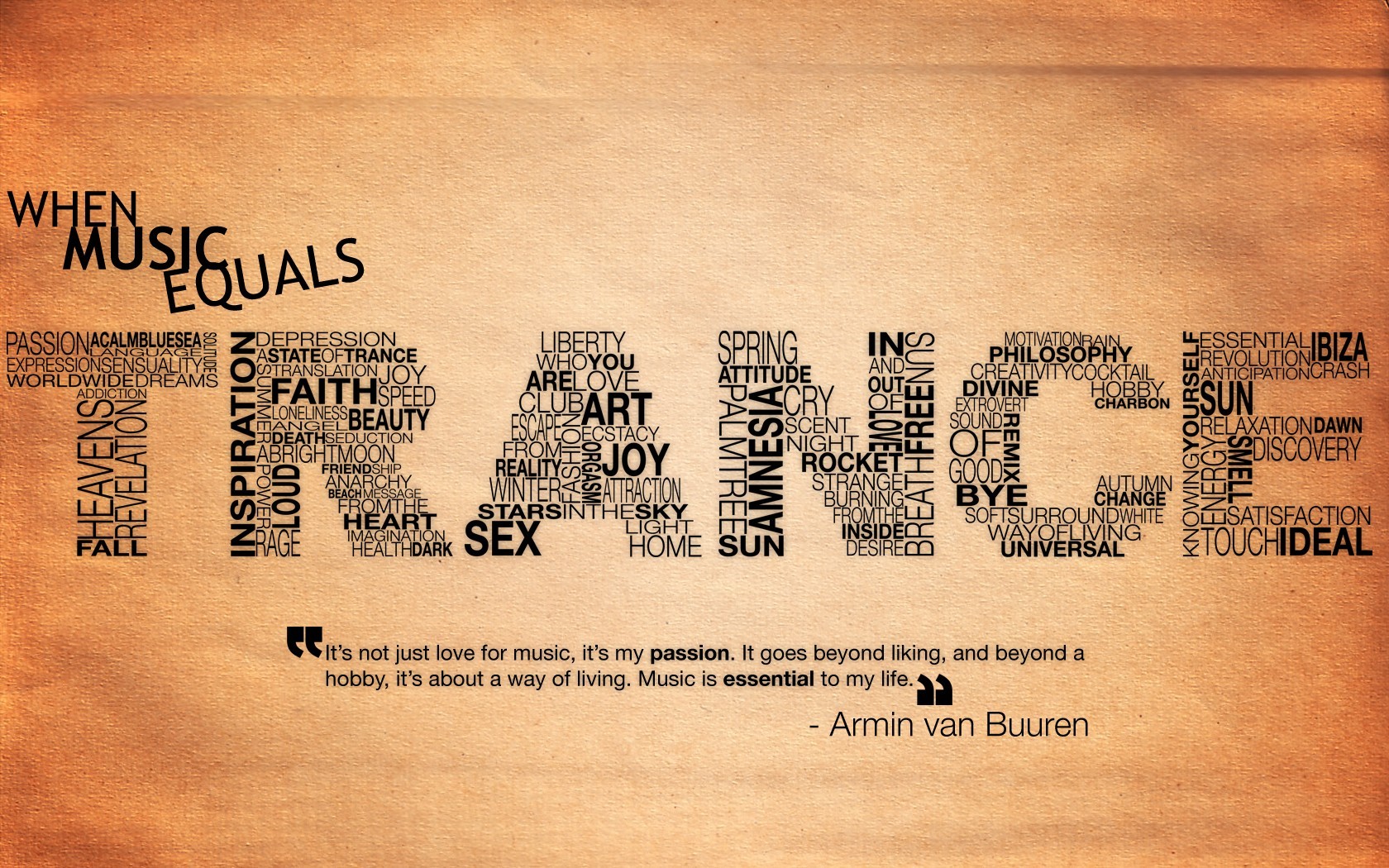 TRANCE-Inschrift aus Wörtern geschrieben