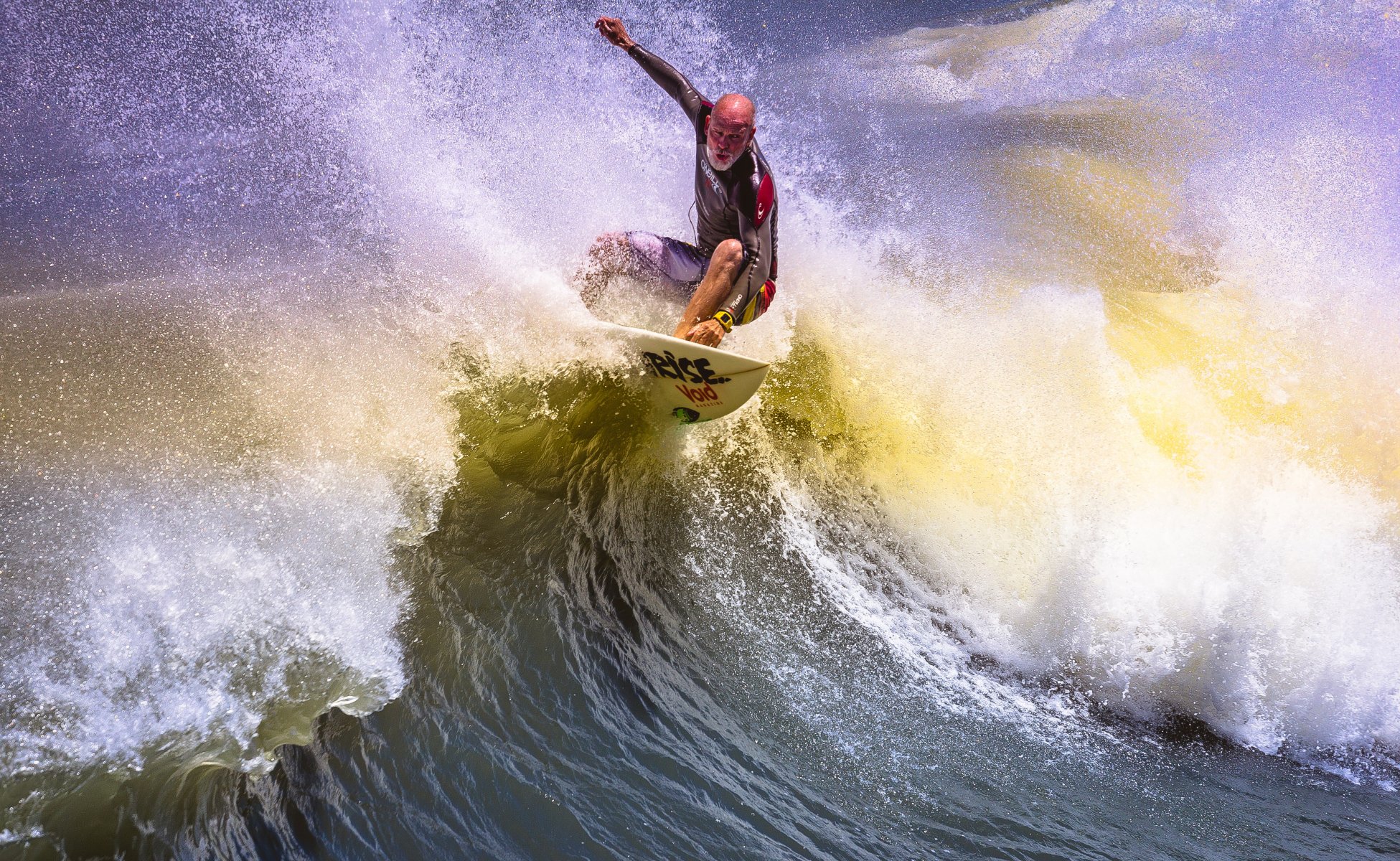 Surfen im meer auf einem brett, surfen unter einem wellenkamm durch den surferSurfen im Meer auf einem Brett, Surfen unter einem Wellenkamm durch den Surfer