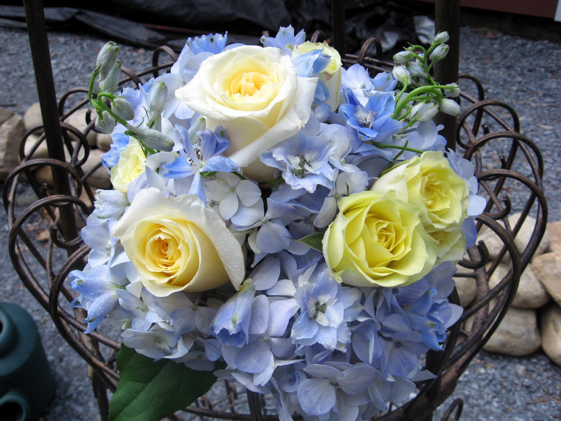 Gelbe helle Blumen auf einem blauen Himmelshintergrund