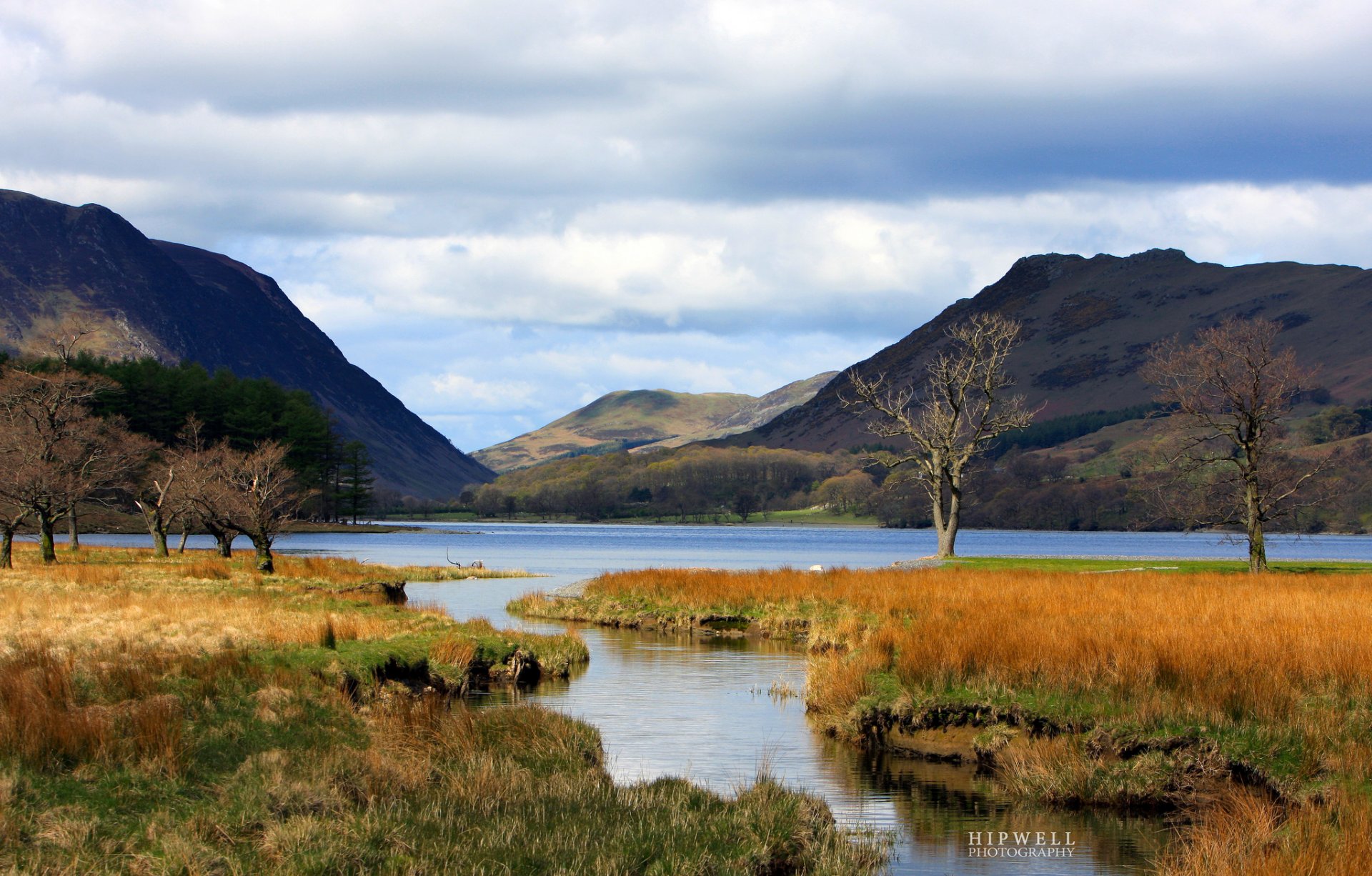 Herbst Bäume auf dem Hintergrund eines schwimmenden Bootes