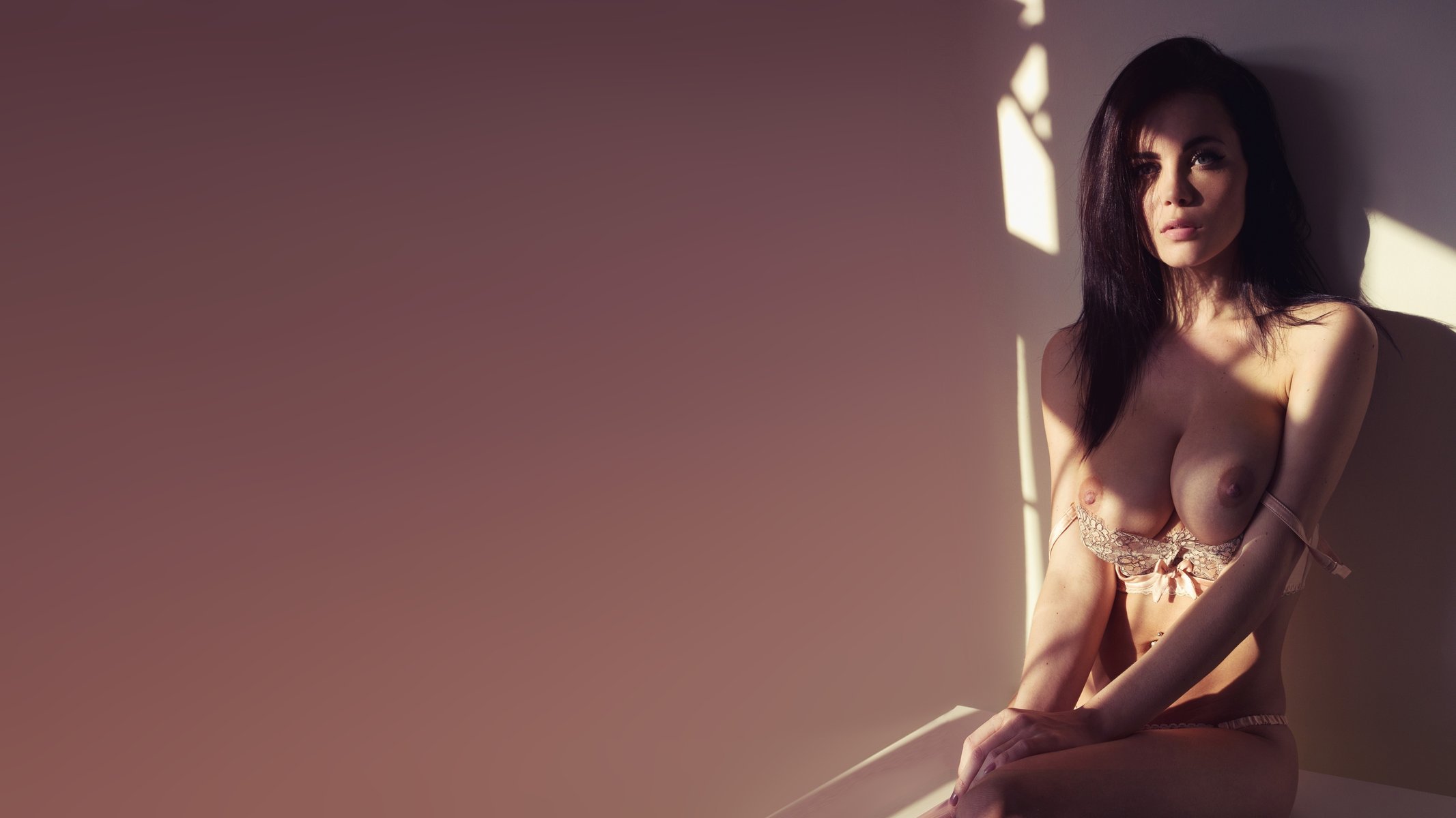 Bohnette mit nackten brüsten auf beigem hintergrund