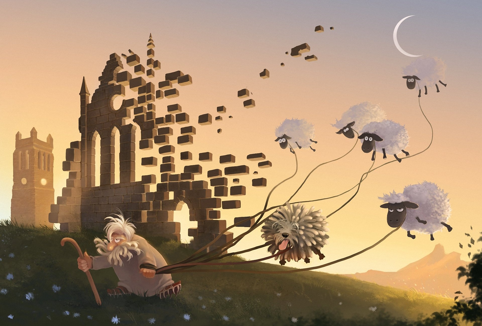 Cover der Gorillaz-Gruppe. Mädchen hält einen Schädel am Seil