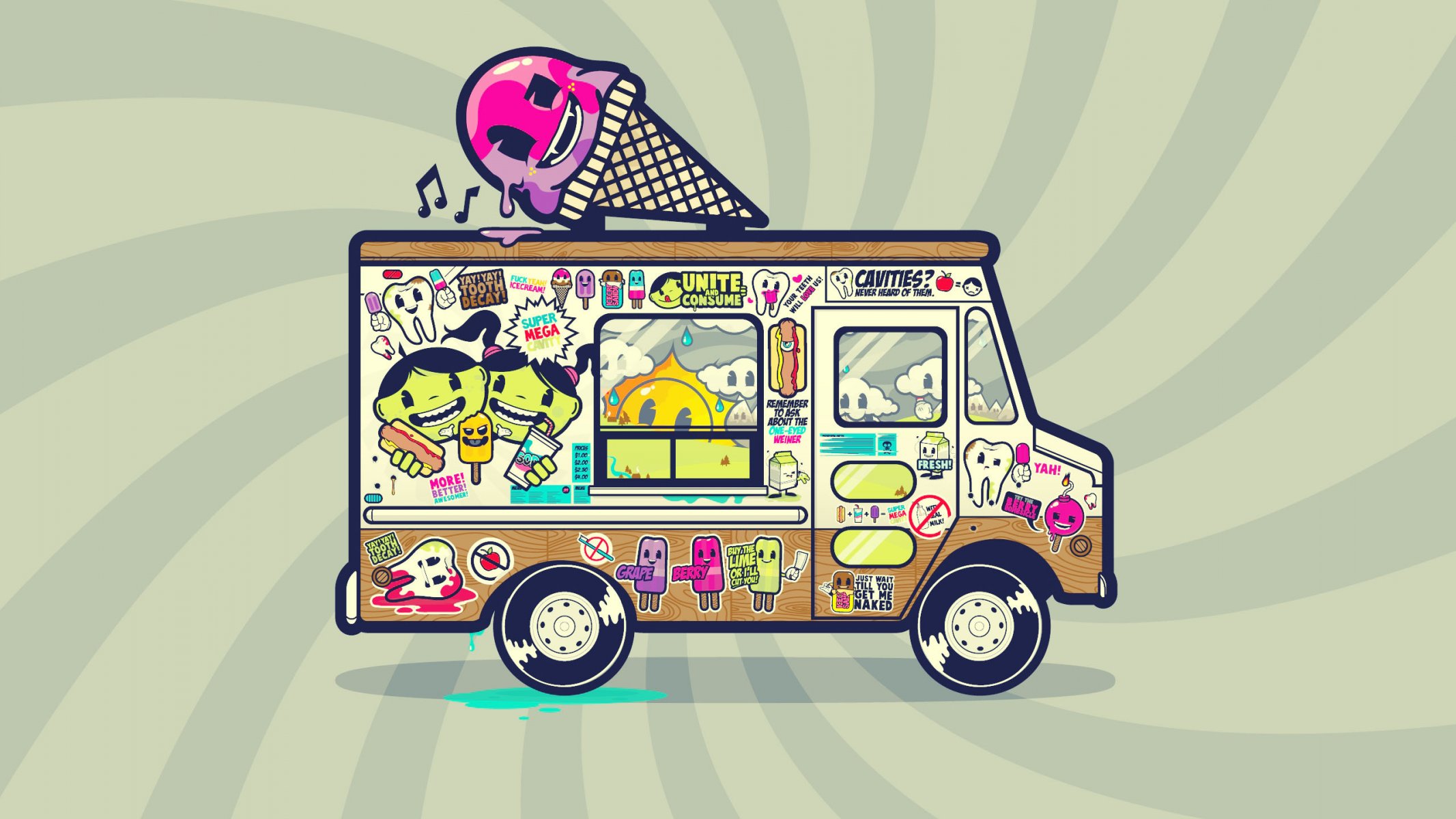 Lieferwagen mit Eiscreme-Aufklebern in verschiedenen Farben