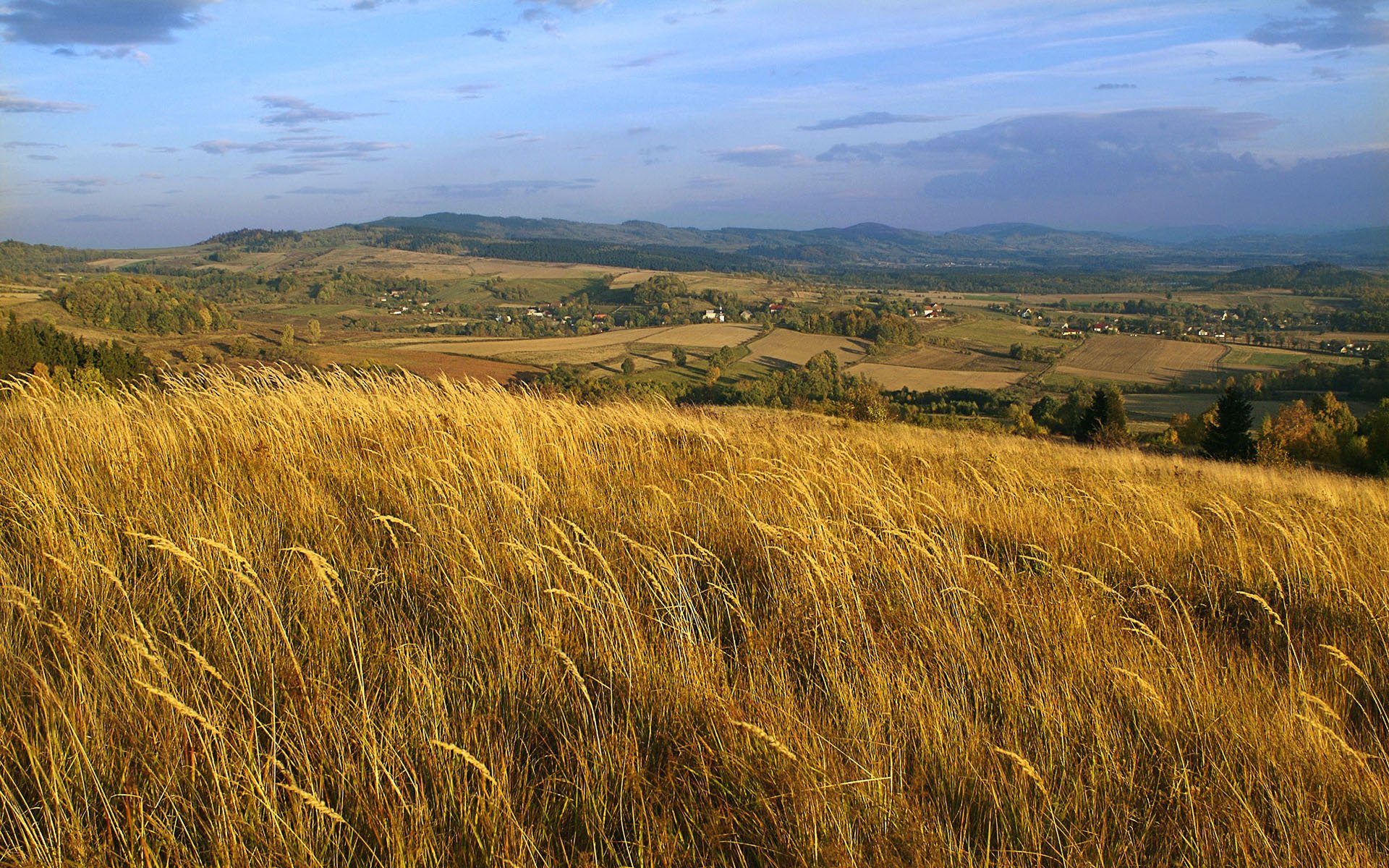 Ein gemaltes Dorf auf dem Hintergrund von Mond und Ricky