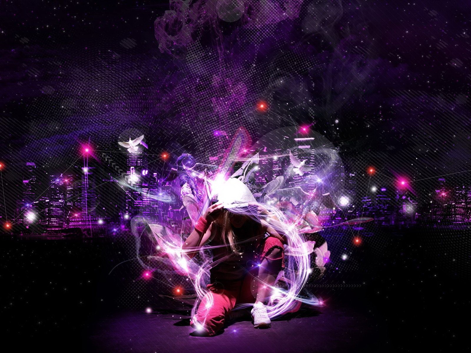 Bunte Spritzer aus dem Feuerwerk treffen aufeinander