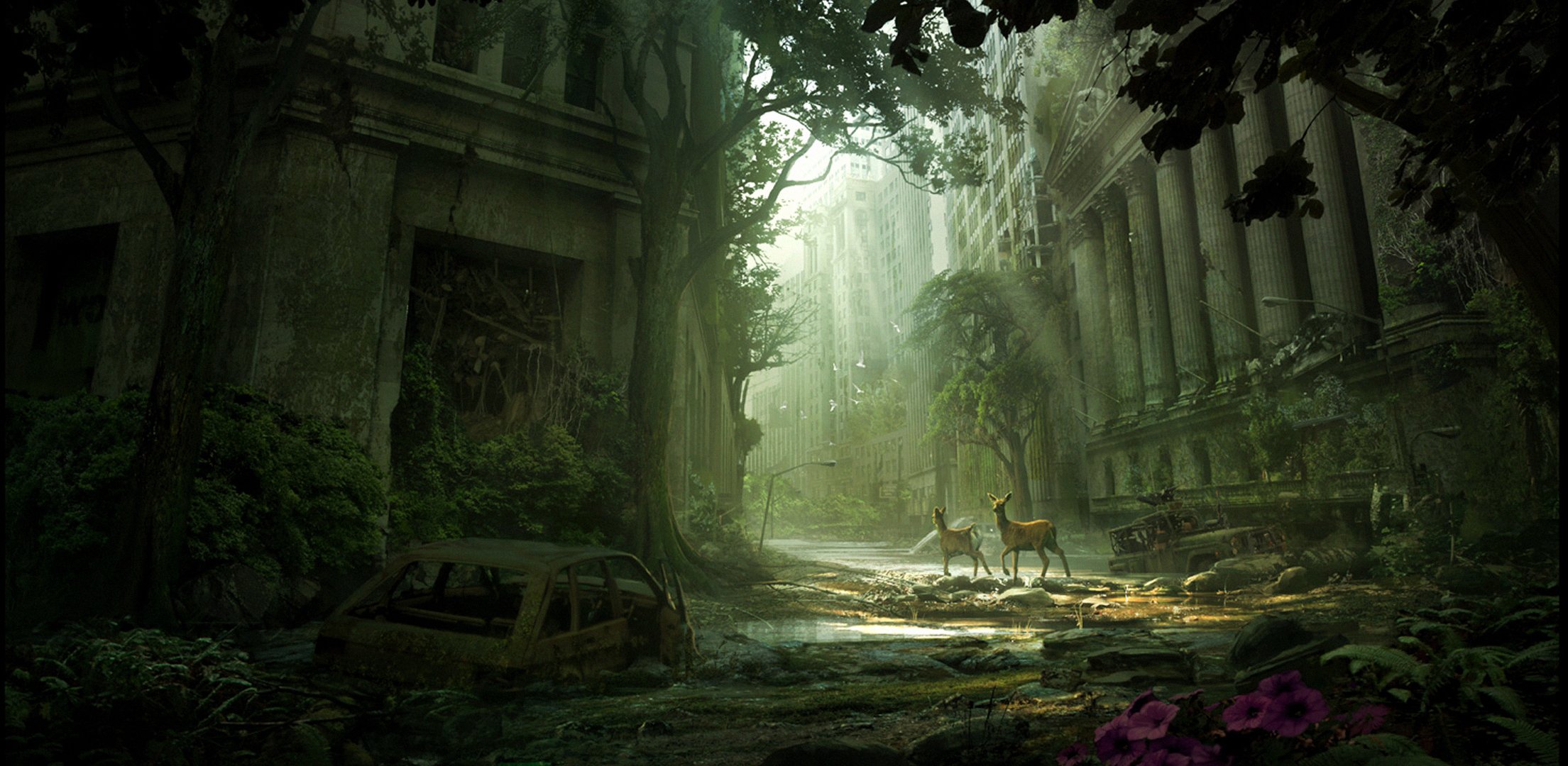 Eine sonnige Stadt mit einem smaragdgrünen Fluss