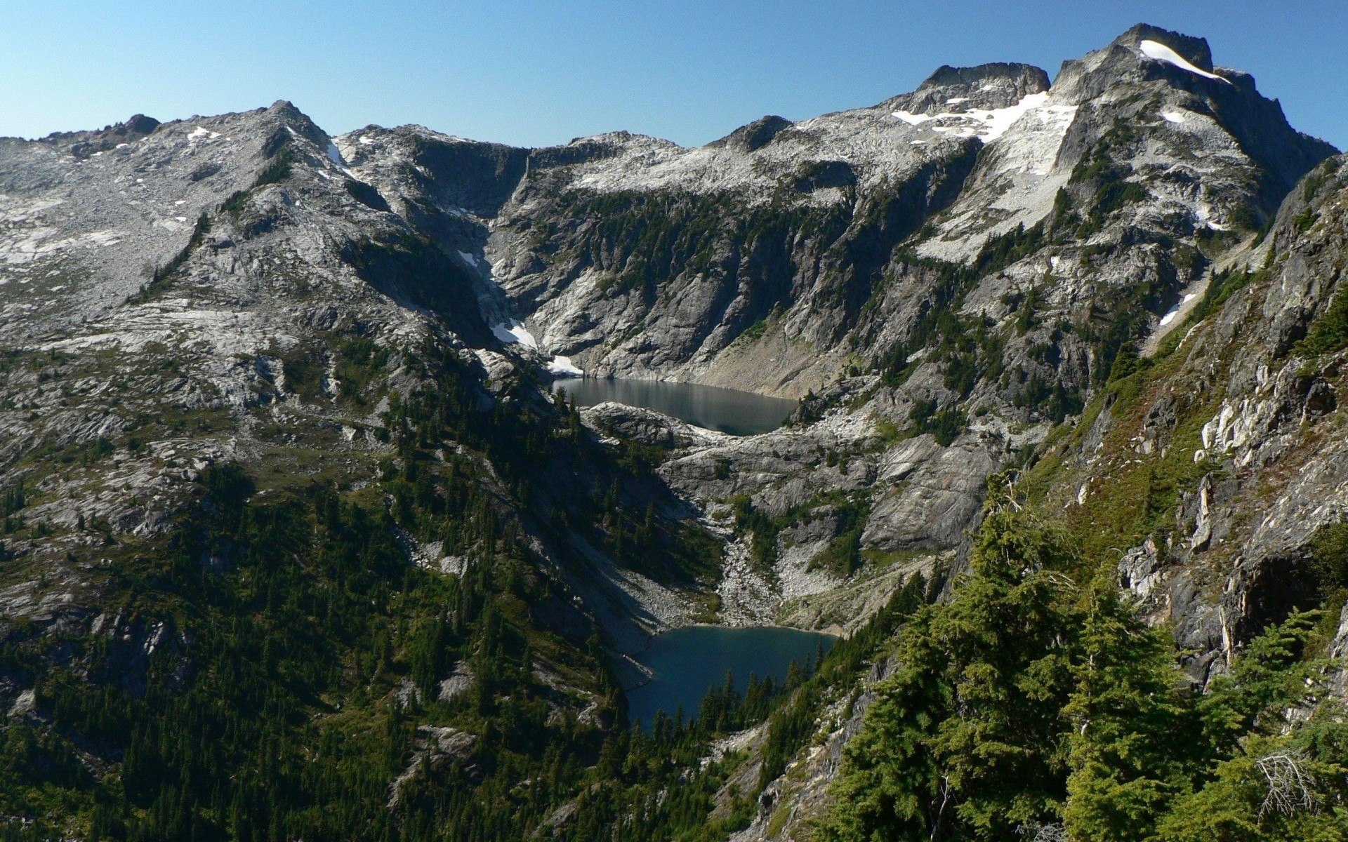 Schöne Waldlandschaft mit See vor dem Hintergrund der Berge