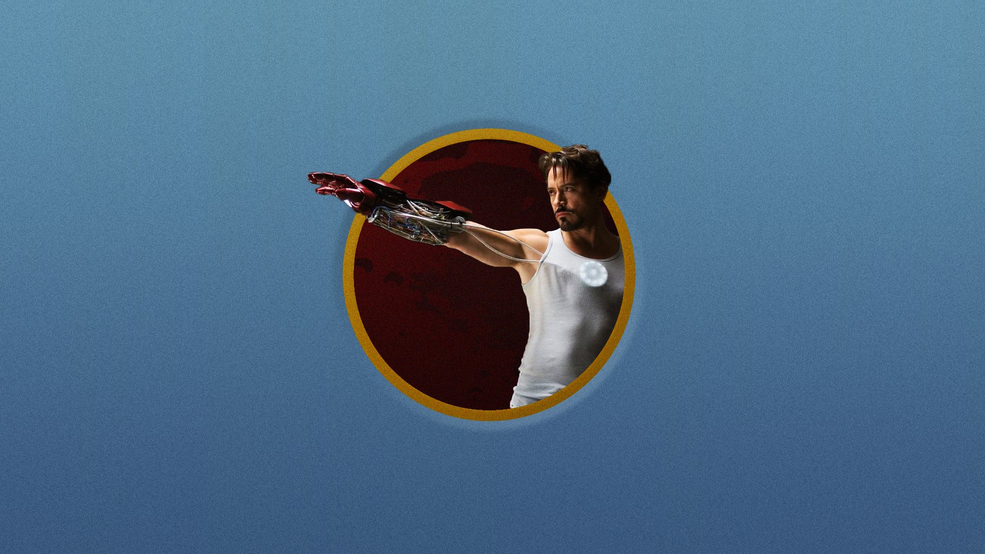 Iron Warrior in Rüstung und Waffen im Hintergrund des Krieges