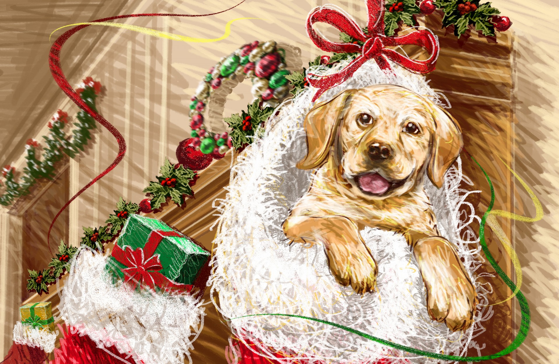 Das Dorf ist ein Weihnachtsbaum auf einem Schlitten