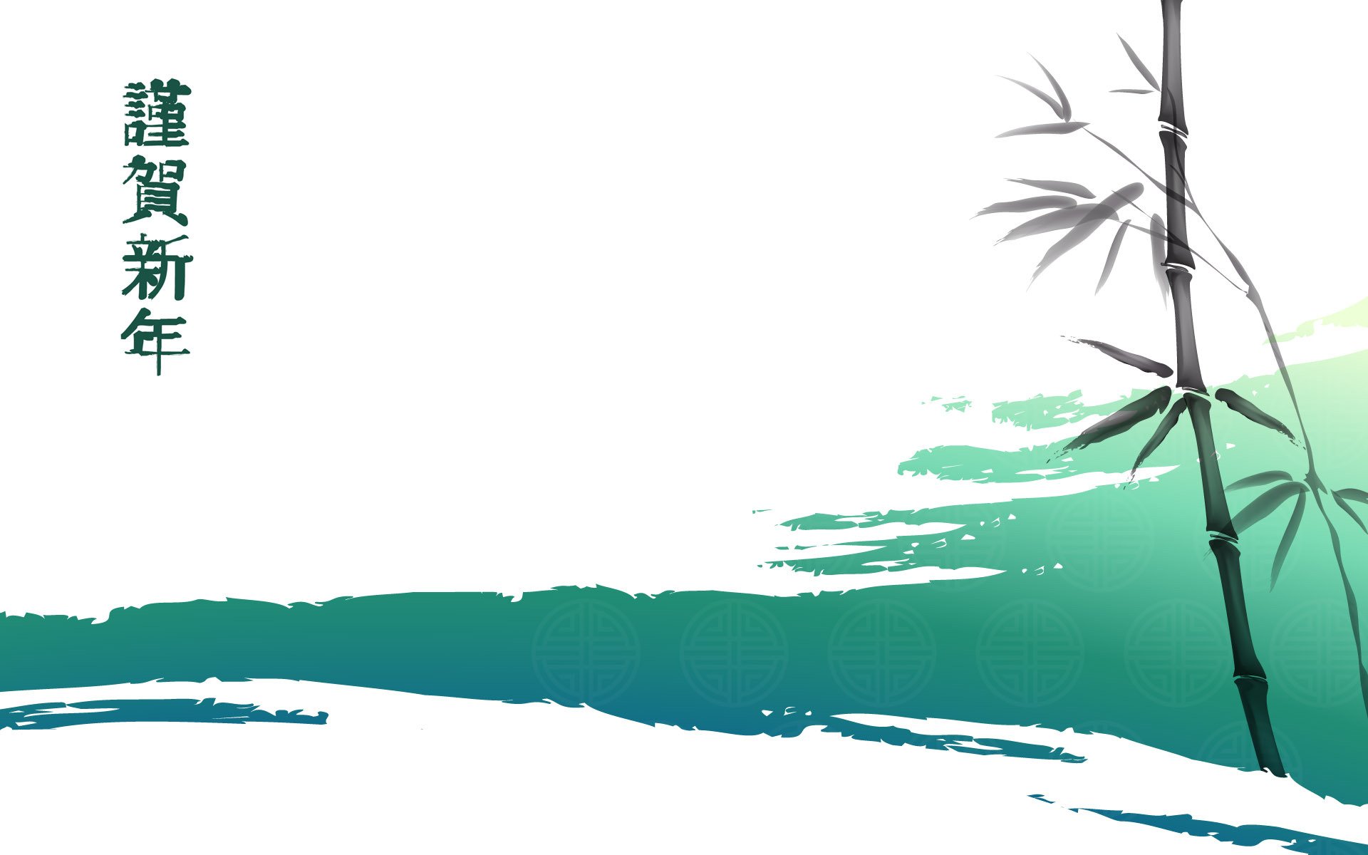 Japanische Zeichnung mit Bambus auf grünem Hintergrund