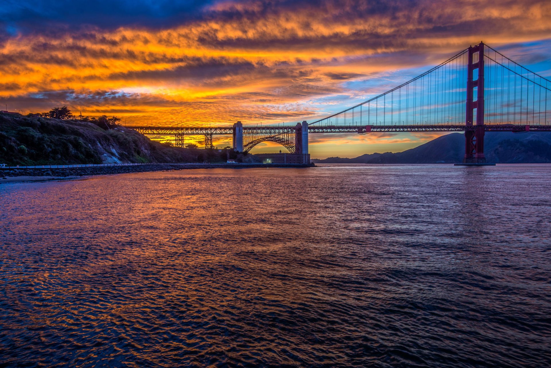 Golden gate bridge über die meerenge bei sonnenuntergangGolden Gate Bridge über die Meerenge bei Sonnenuntergang