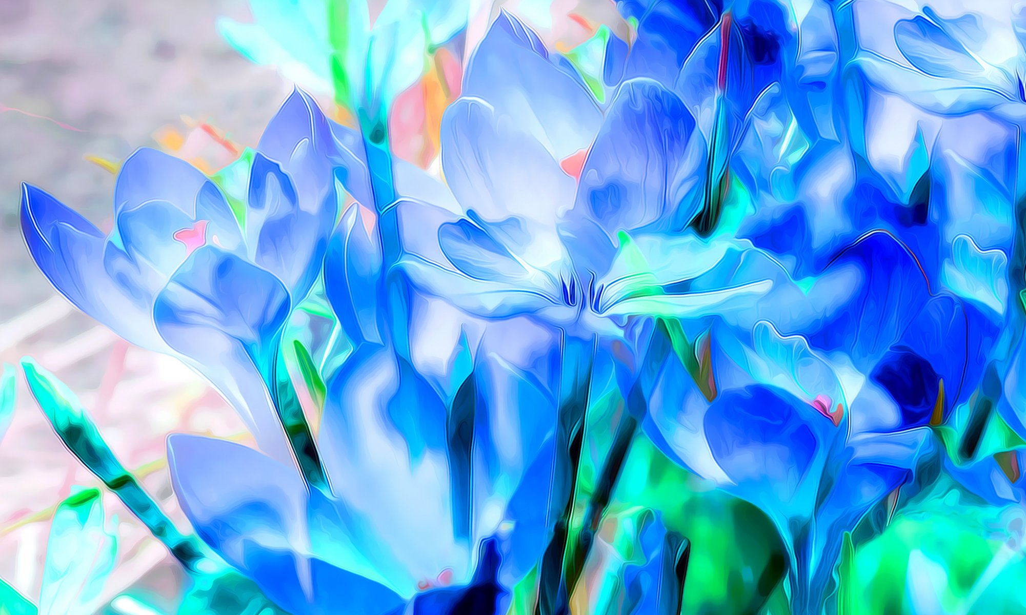 Blaue Blumen mit länglichen Blütenblättern im Blumenbeet