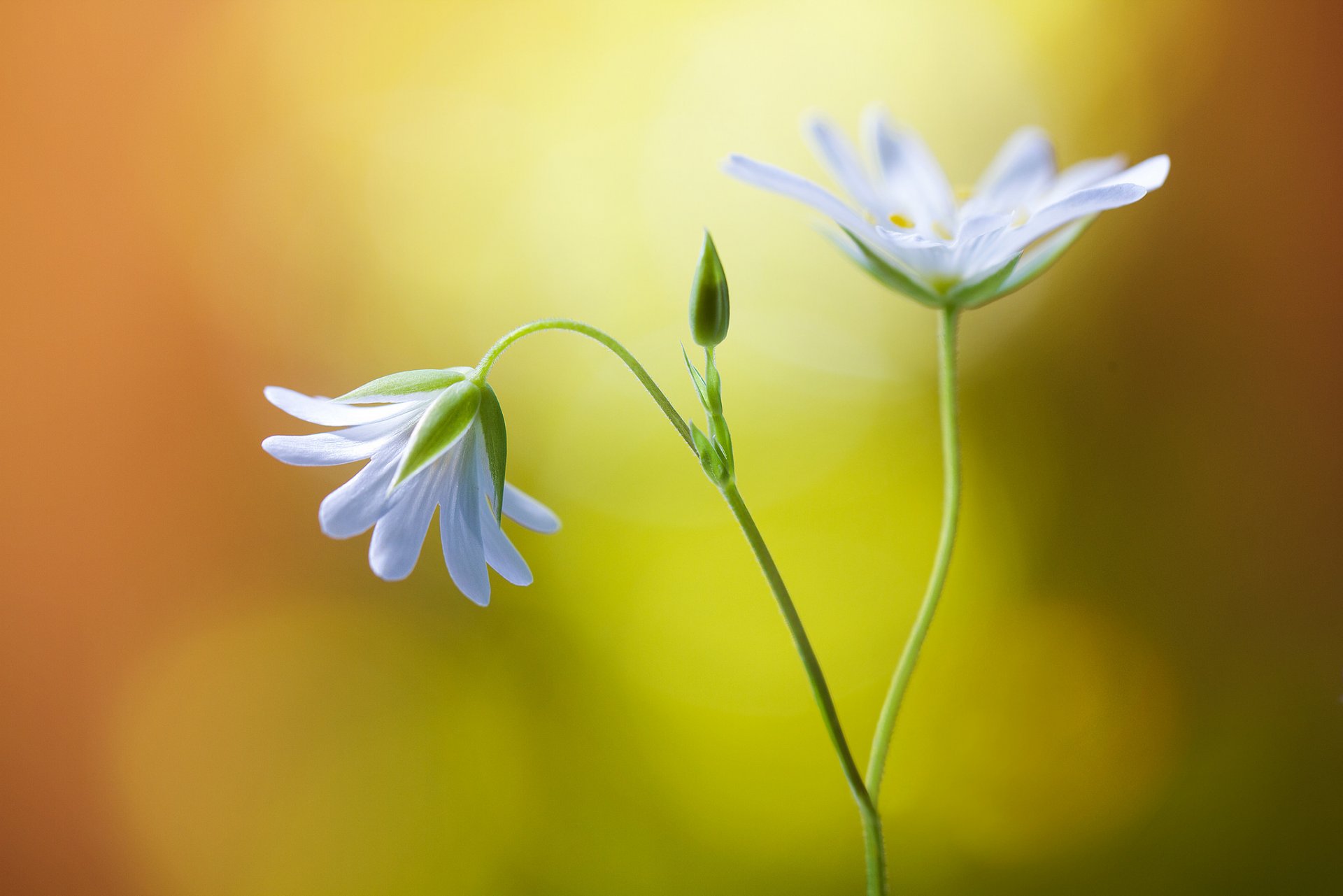 Kleine himbeerblume auf einem verschwommenen gelben hintergrundKleine Himbeerblume auf einem verschwommenen gelben Hintergrund