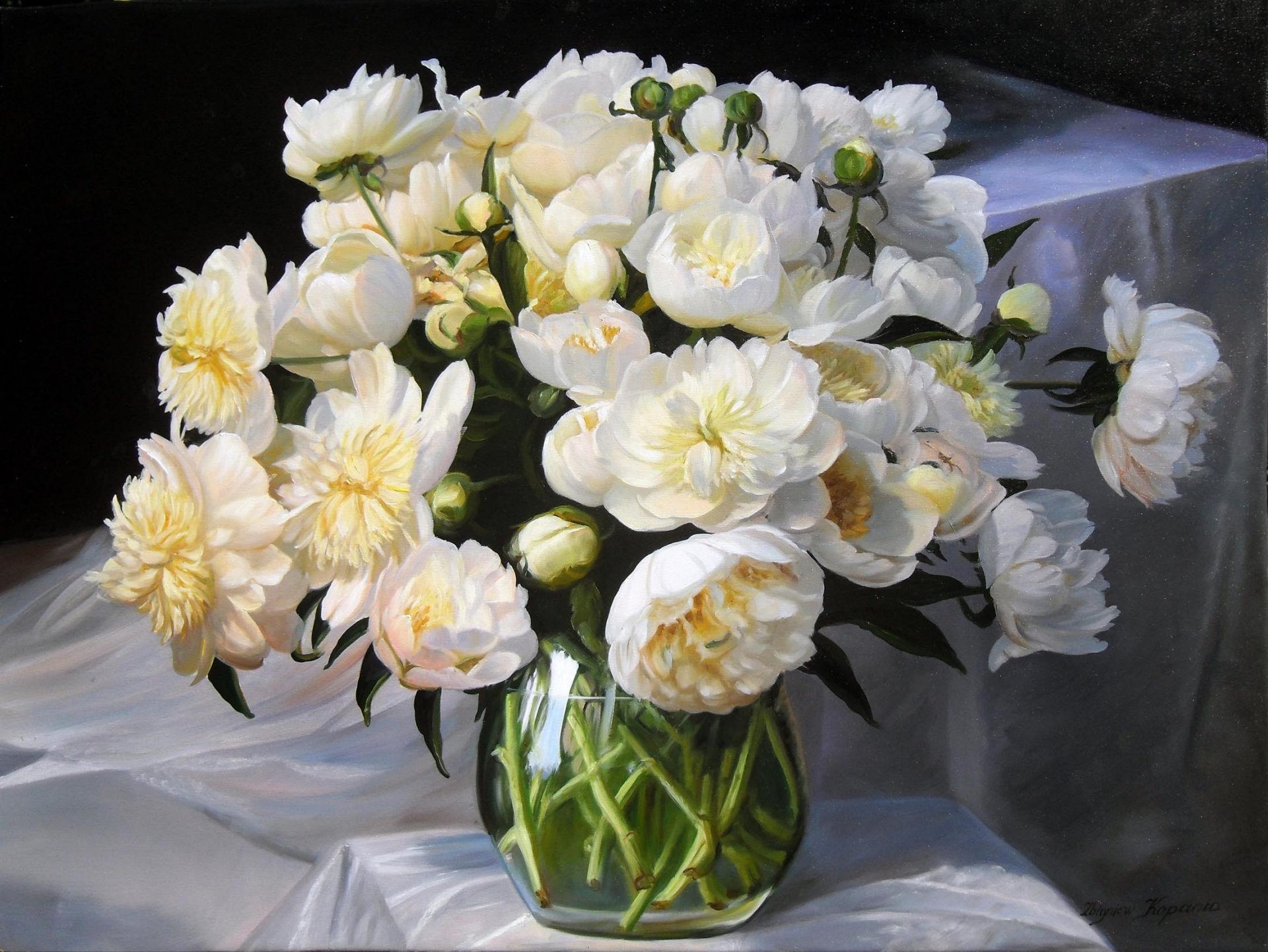 Stillleben eines Strauß schicker Pfingstrosen in einer Vase