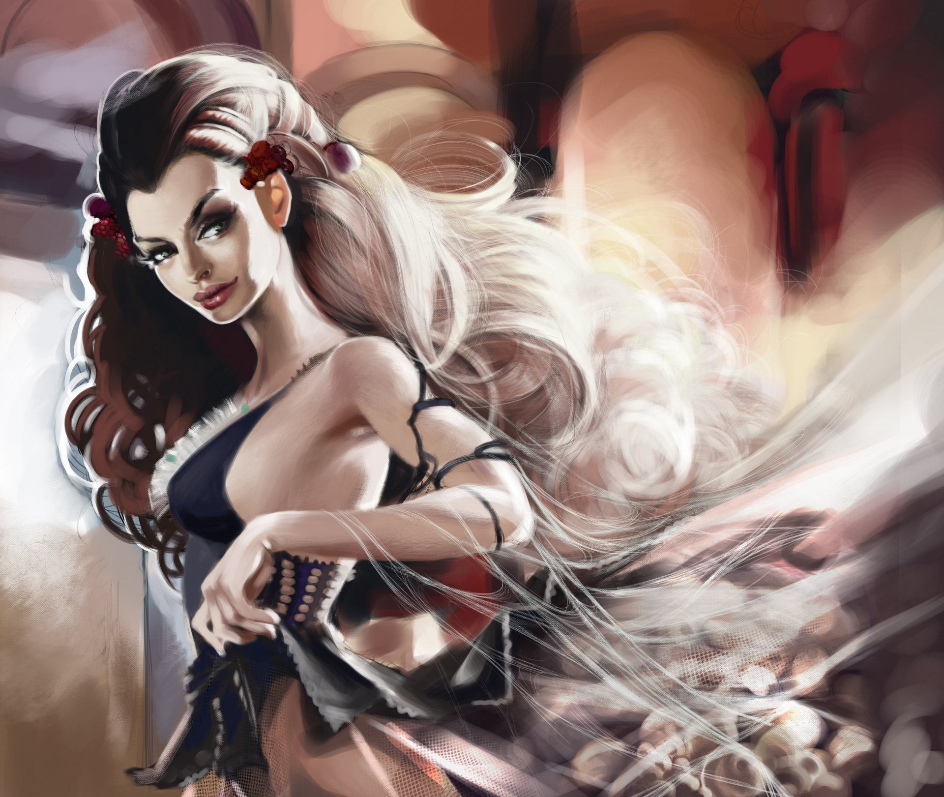 Das mädchen hat lockiges haar, das nach unten gehtDas Mädchen hat lockiges Haar, das nach unten geht