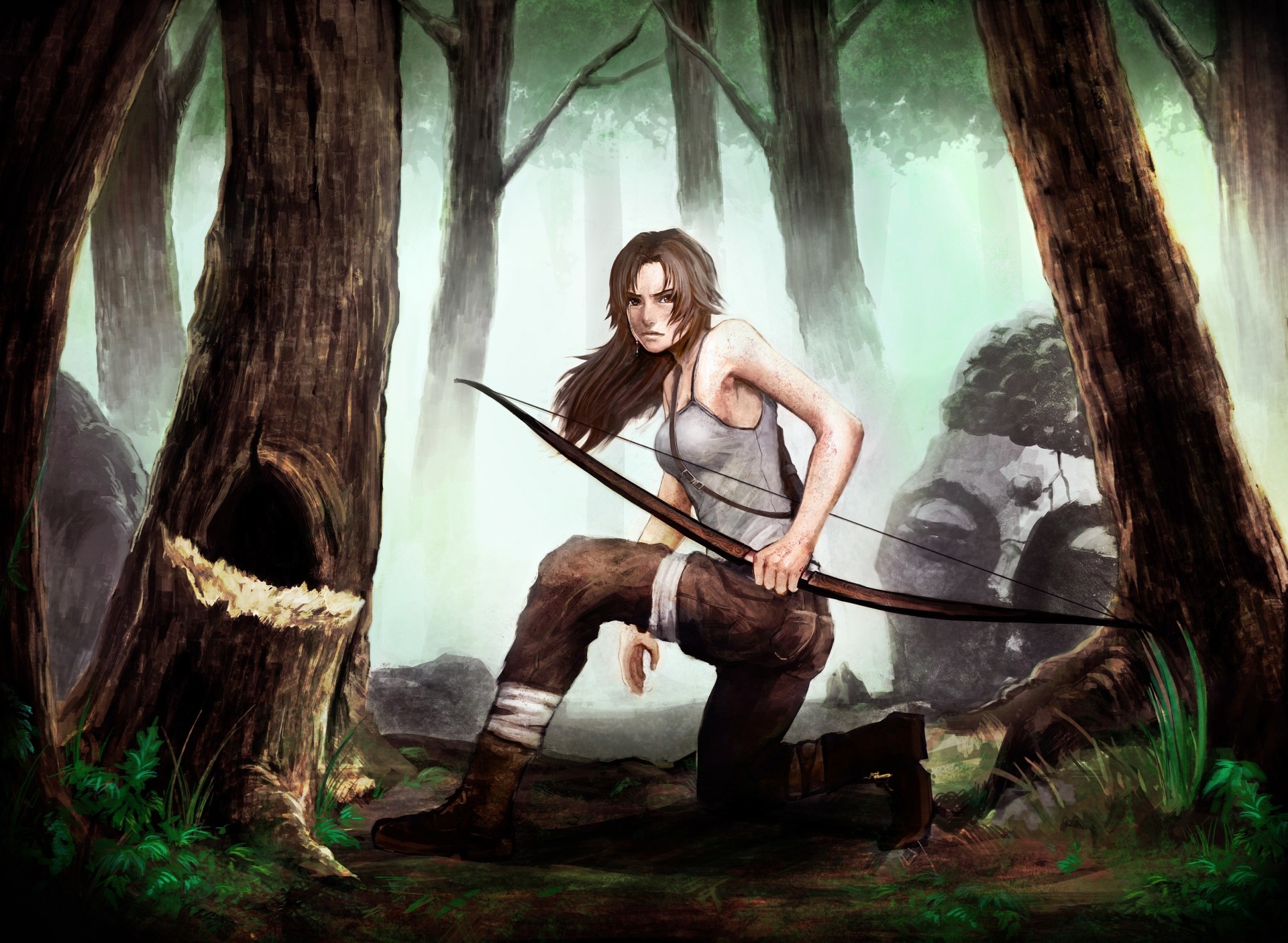 Mädchen schießt einen Bogen mit brennenden Pfeilen
