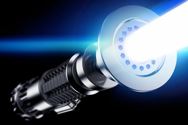 Ein krieger mit schwertern, ganz in laserpunkten in der fabrikEin Krieger mit Schwertern, ganz in Laserpunkten in der Fabrik