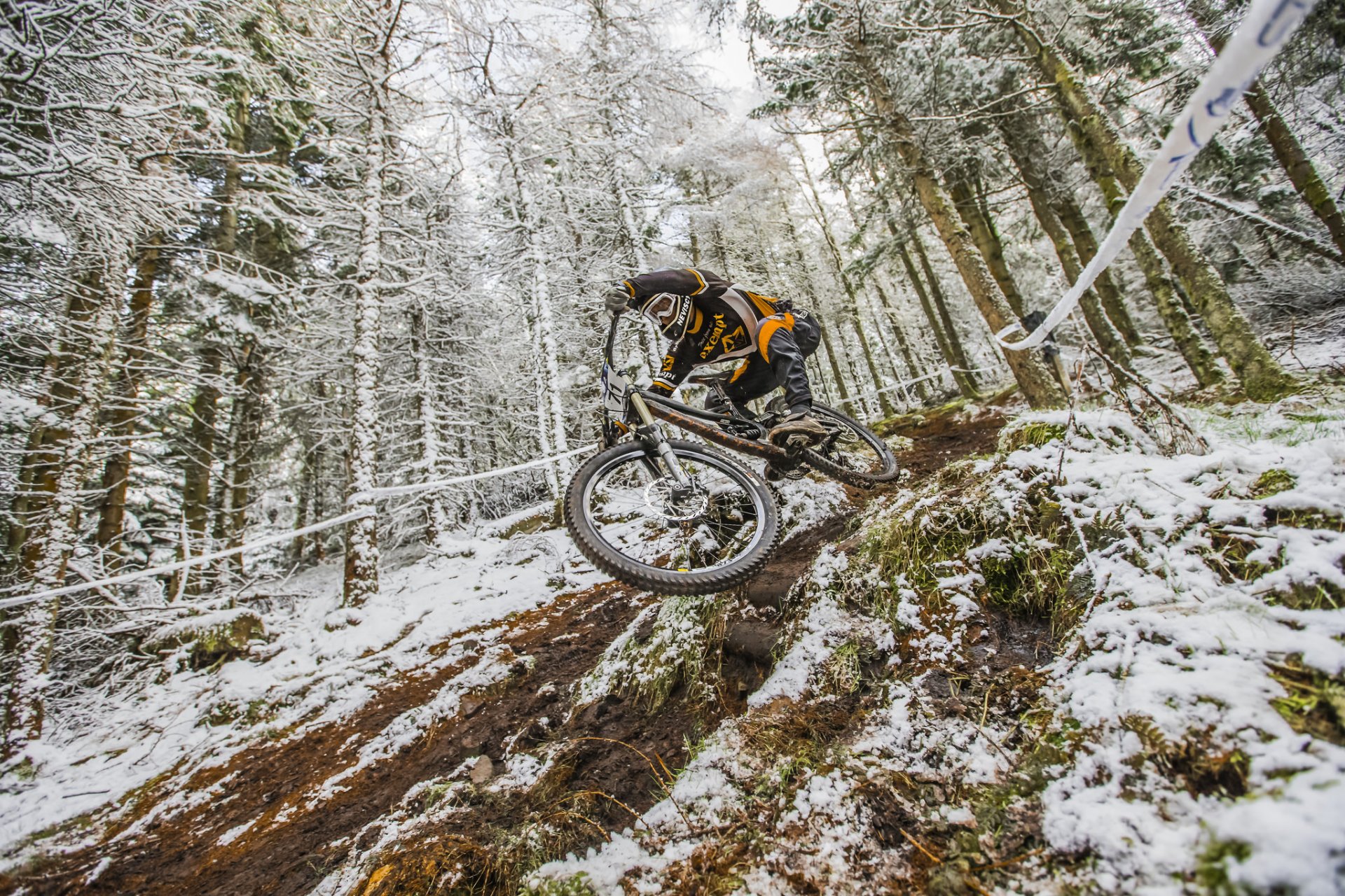Gefährlicher Abstieg eines Radfahrers im Winter