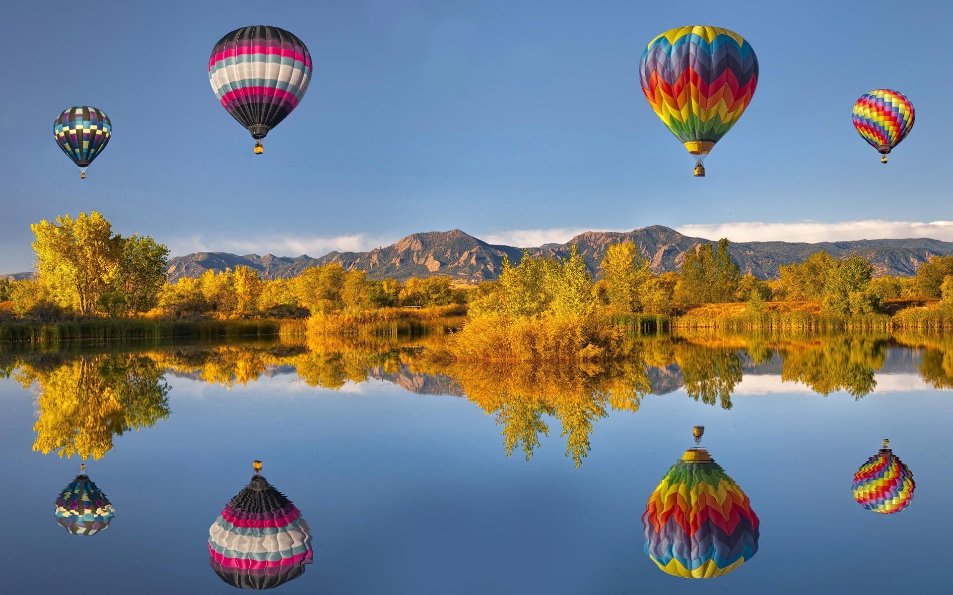 Luftballons auf dem hintergrund der berglandschaftLuftballons auf dem Hintergrund der Berglandschaft