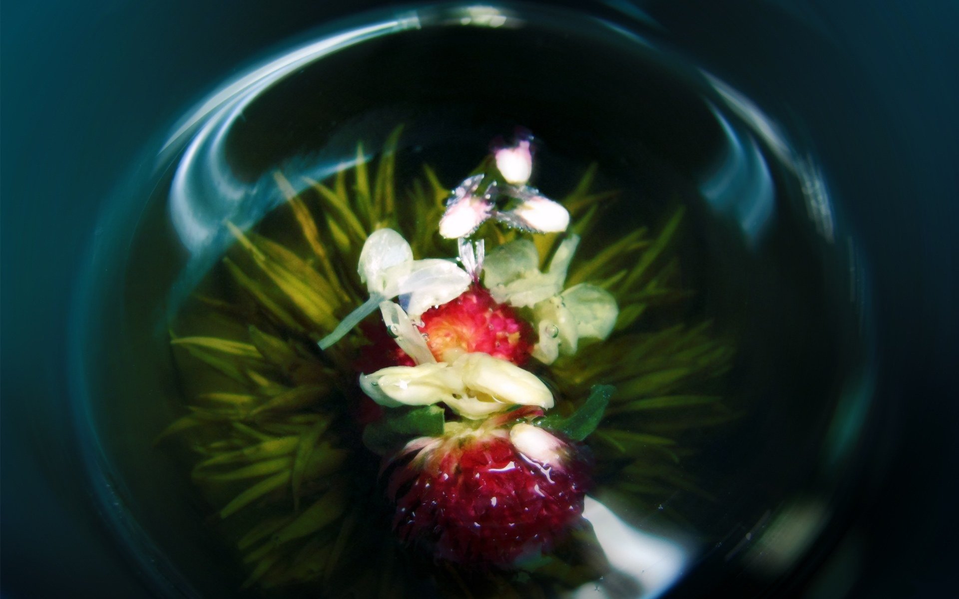 Orchidee mit Schmetterlingen in Wasserreflexion