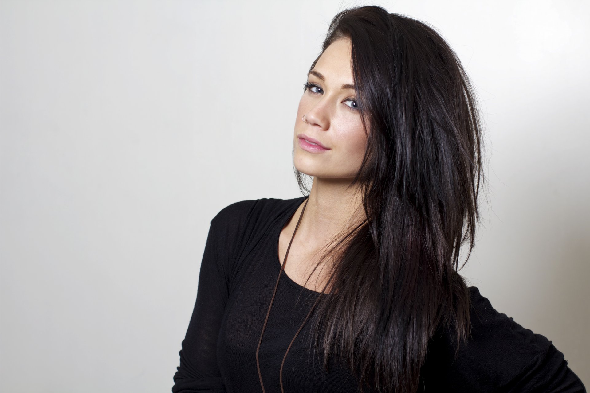 Schönes Mädchen auf schwarzem weißem Hintergrund