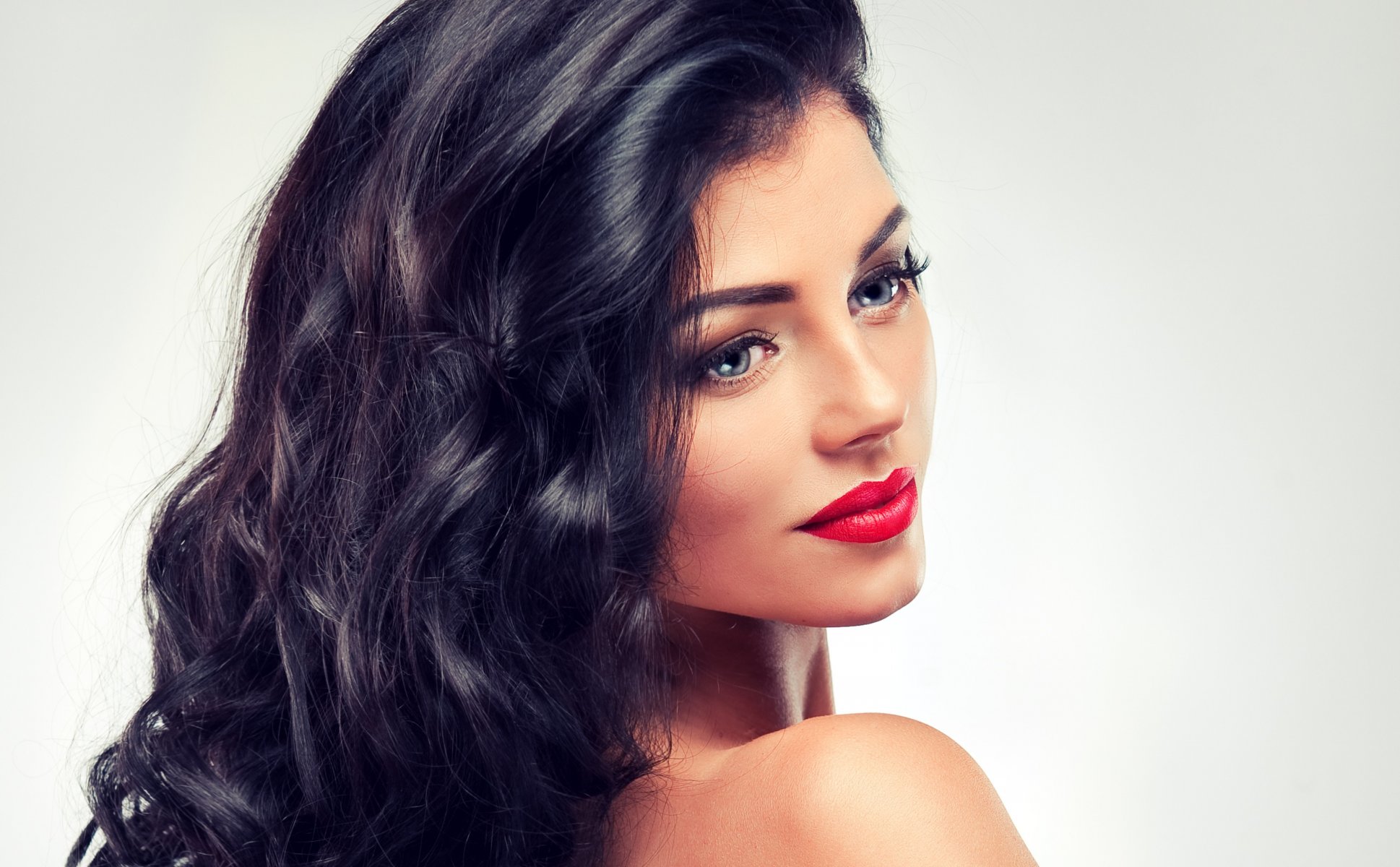 Porträt eines Mädchens mit blauen Wimpern und Lippen