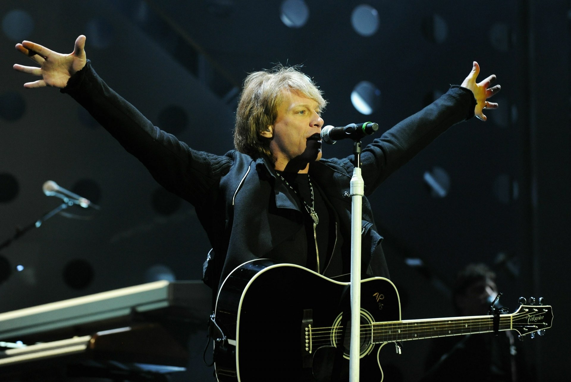 Ein mann mit einer gitarre singt auf der bühne ins mikrofonEin Mann mit einer Gitarre singt auf der Bühne ins Mikrofon
