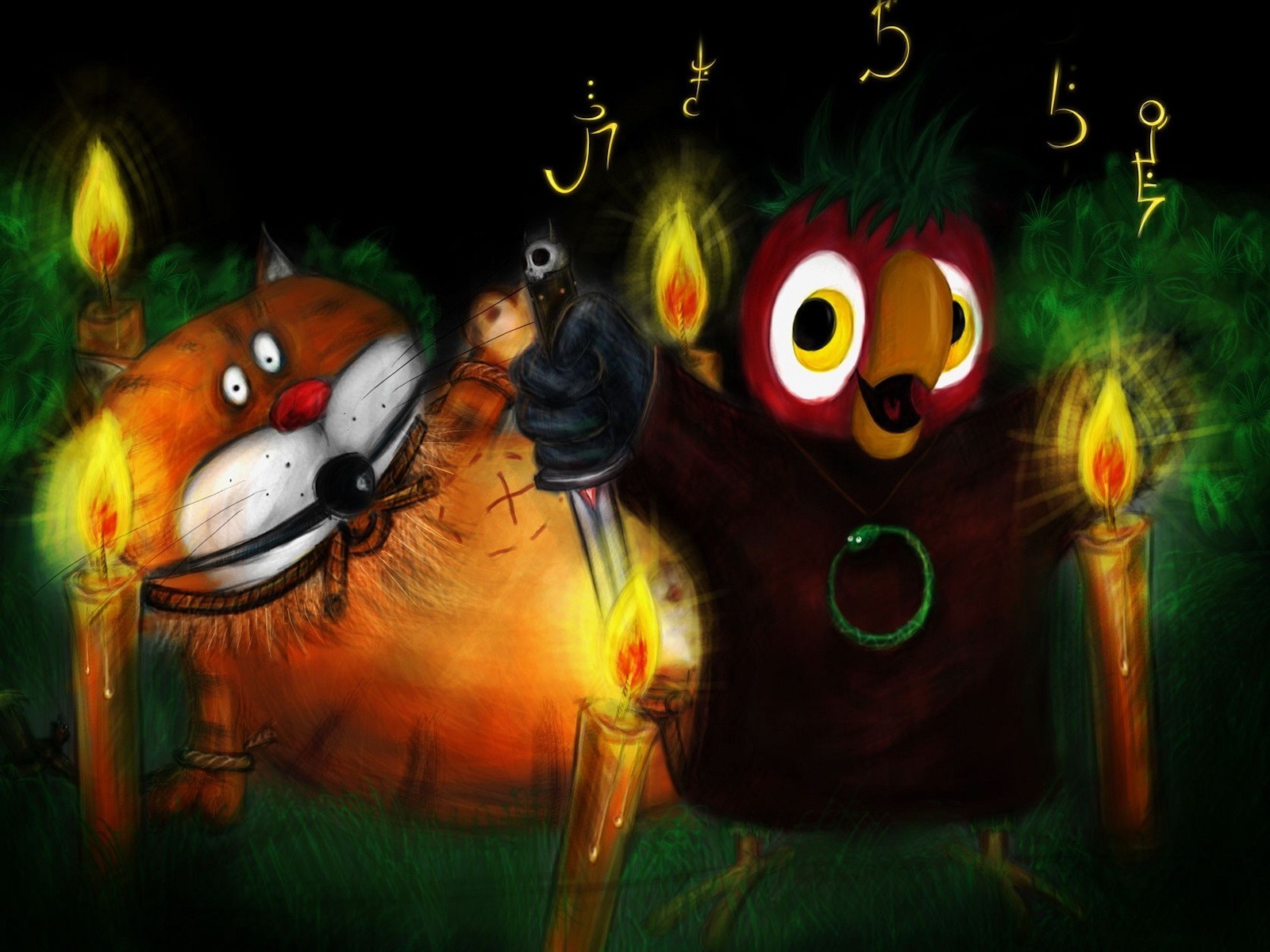 Mädchen mit fuchs und vogel auf dem hintergrund der mondlandschaftMädchen mit Fuchs und Vogel auf dem Hintergrund der Mondlandschaft