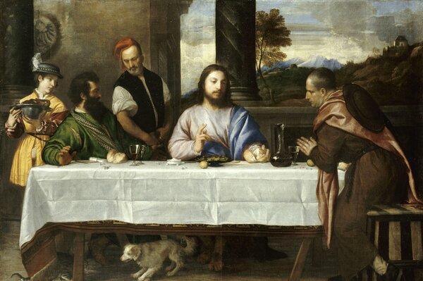 Meer, Berge, Hund, Schüssel auf dem Tisch mit Gedanken