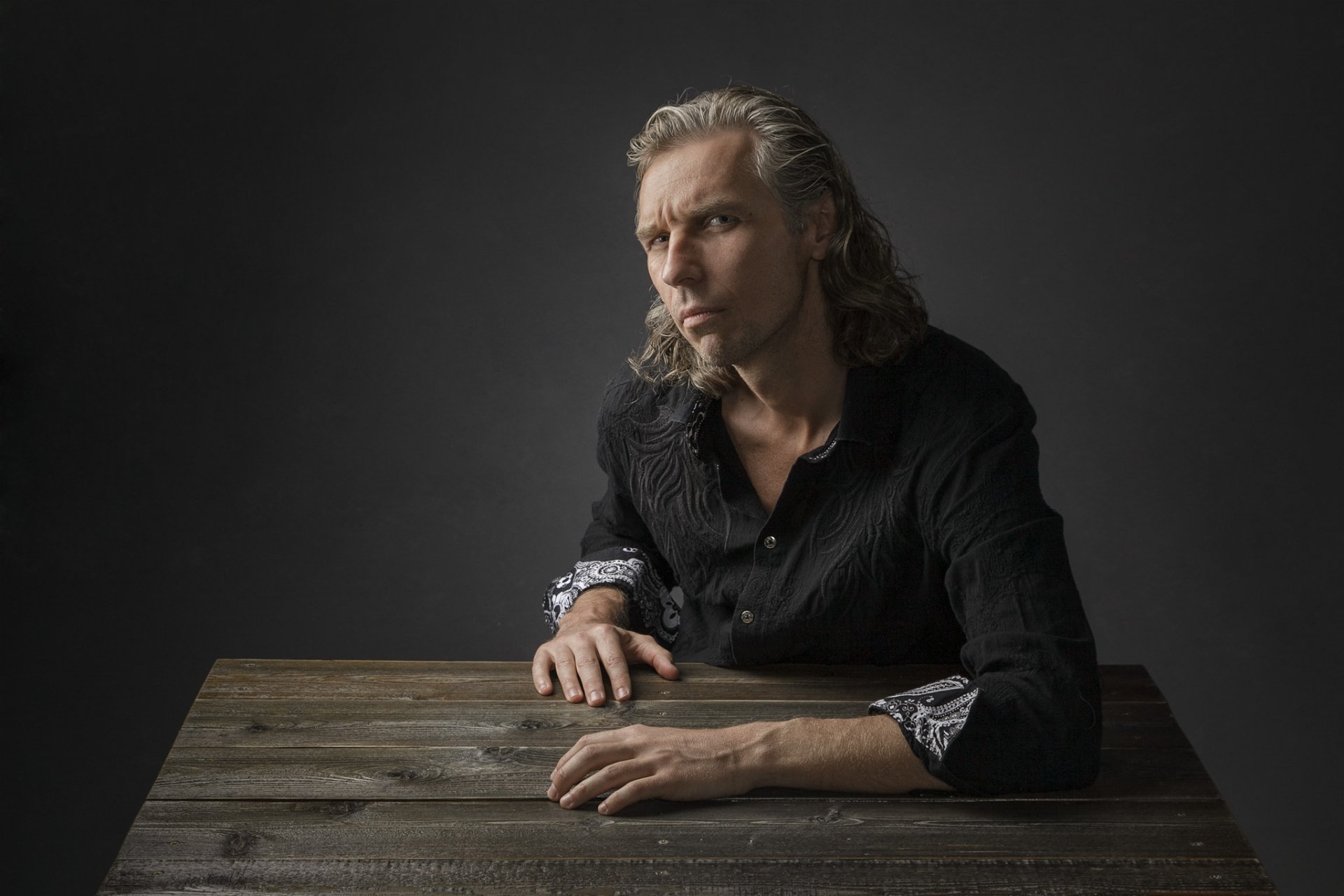 Ein Mann am Tisch, mit einem aufschlussreichen Blick