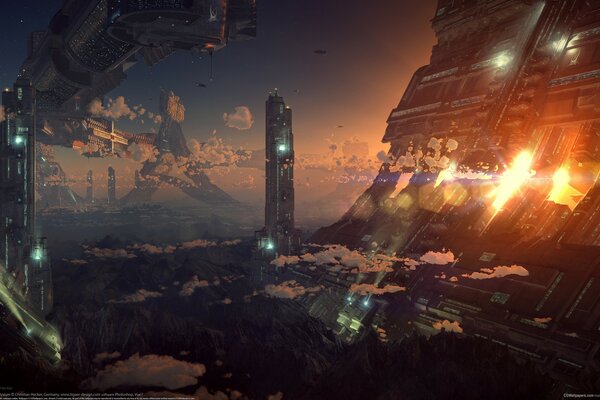 Sojus-Station auf dem Hintergrund des Planeten Erde im offenen Raum