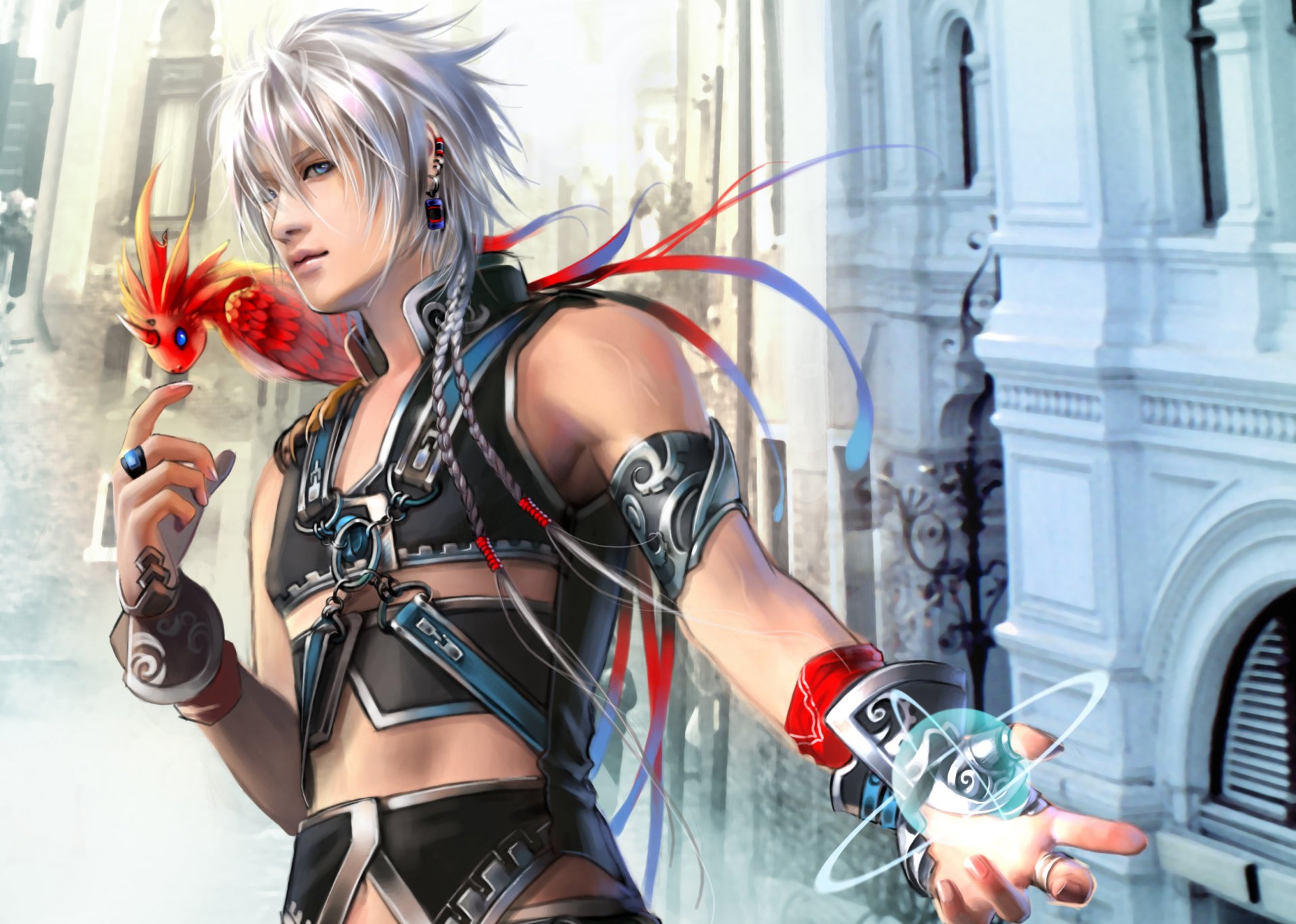 Ein Typ, der Magie mit einem Vogel auf der Schulter hat