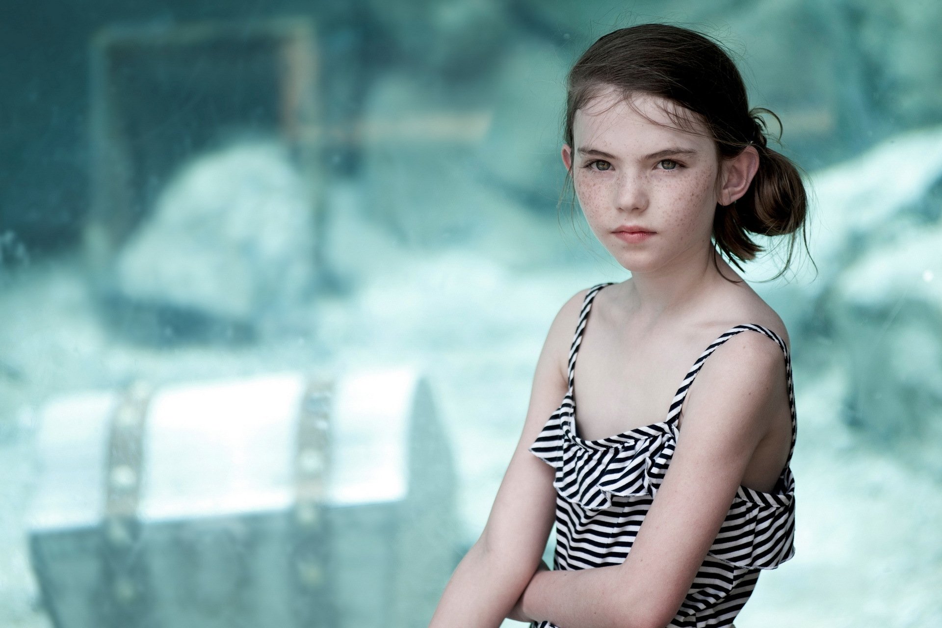 Kleines mädchen auf einem hintergrund mit einem nautischen themaKleines Mädchen auf einem Hintergrund mit einem nautischen Thema