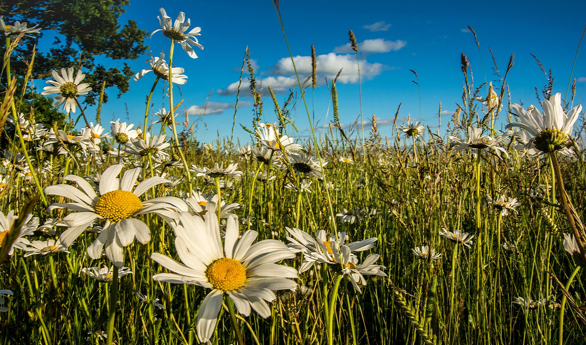 Mikro-Tapete gelbe Blumen im Sommer im Feld